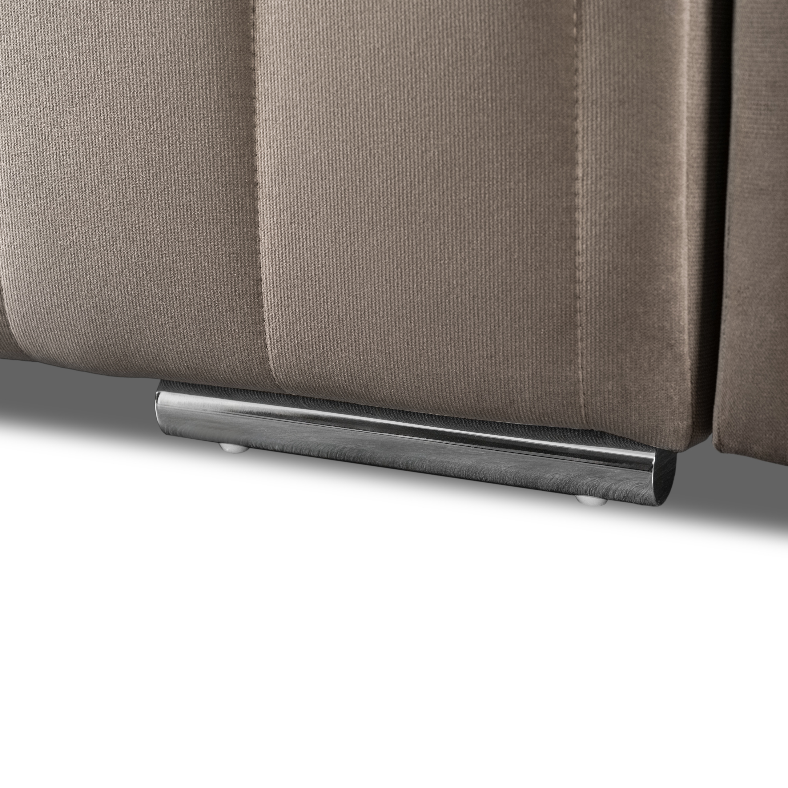 Srebrne nóżki kanapy o modnym kształcie to stylowy element, który dodaje jej nowoczesnego charakteru. Wykonane z wytrzymałego metalu, zapewniają stabilność i trwałość jednocześnie nadając meblowi lekkiego, eleganckiego wyglądu.