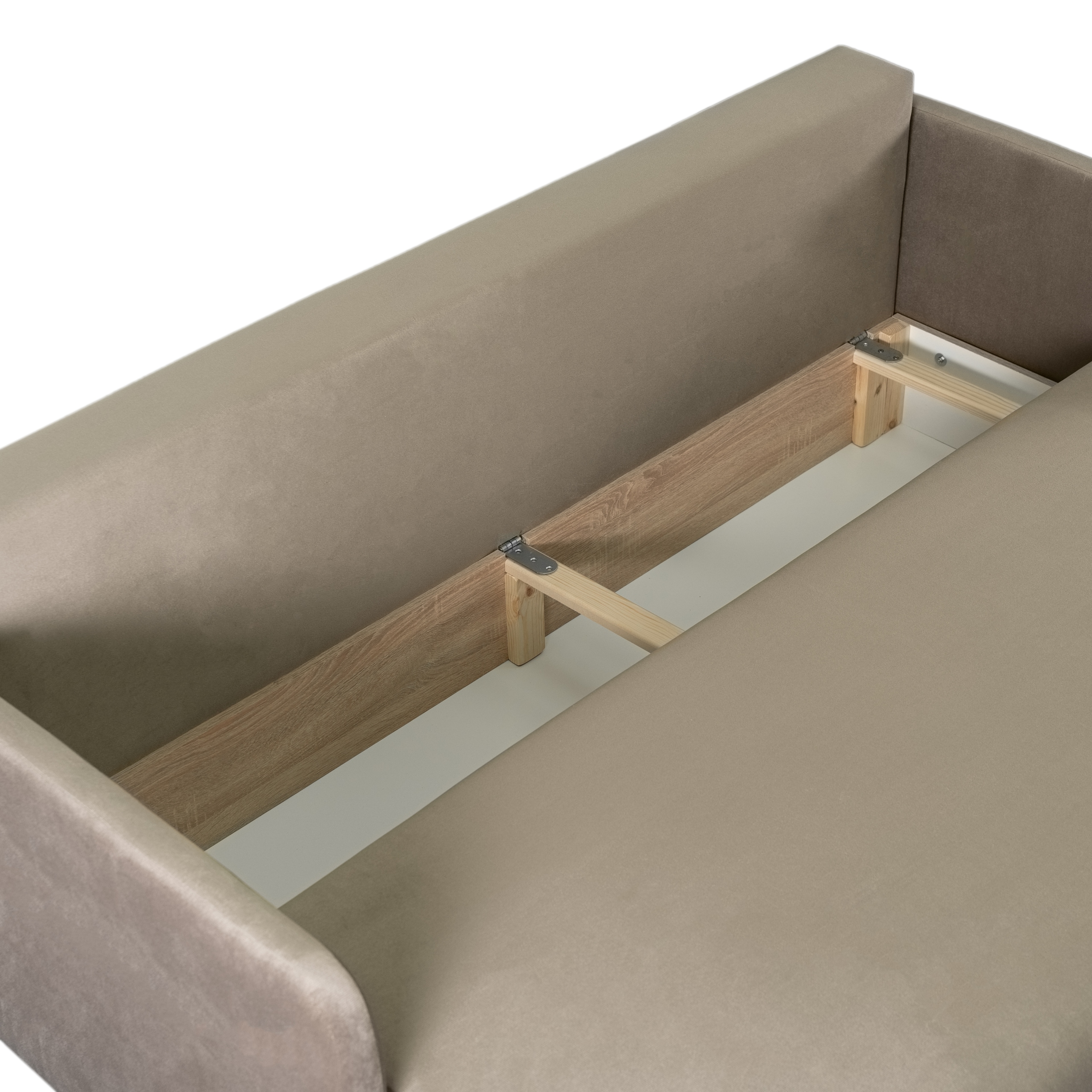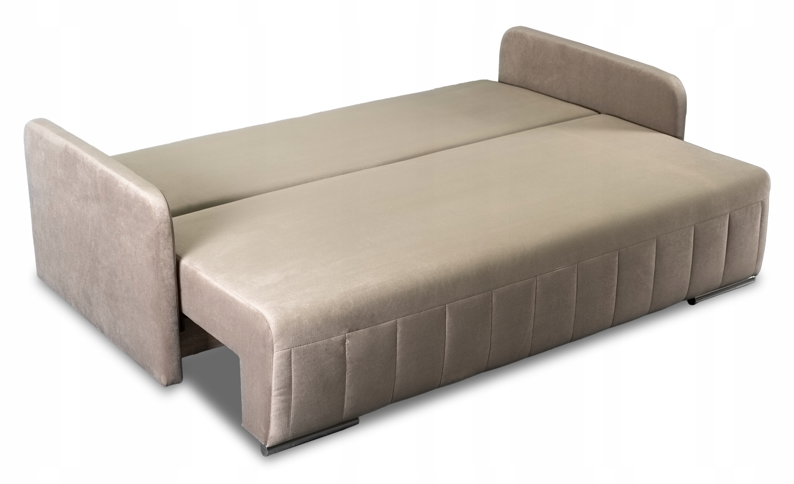 Jedną z głównych zalet kanapy jest funkcja spania, która pozwala na szybkie przekształcenie jej w przestronne łóżko o wymiarach 190x147 cm.