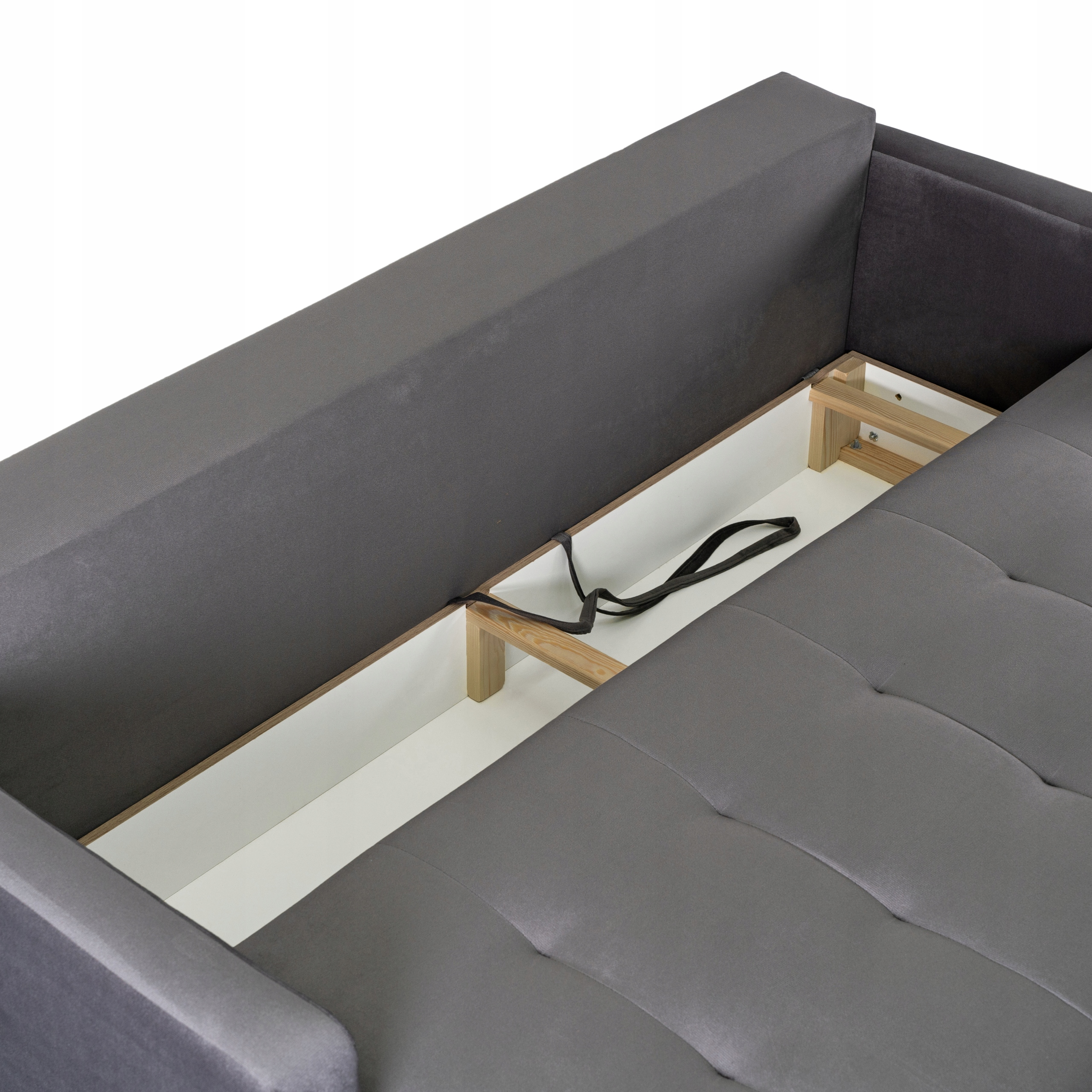 Wersalka ma praktyczny pojemnik, który sprawdzi się jako dodatkowe miejsce do przechowywania. Idealnie pomieści pościel, koce czy poduszki.