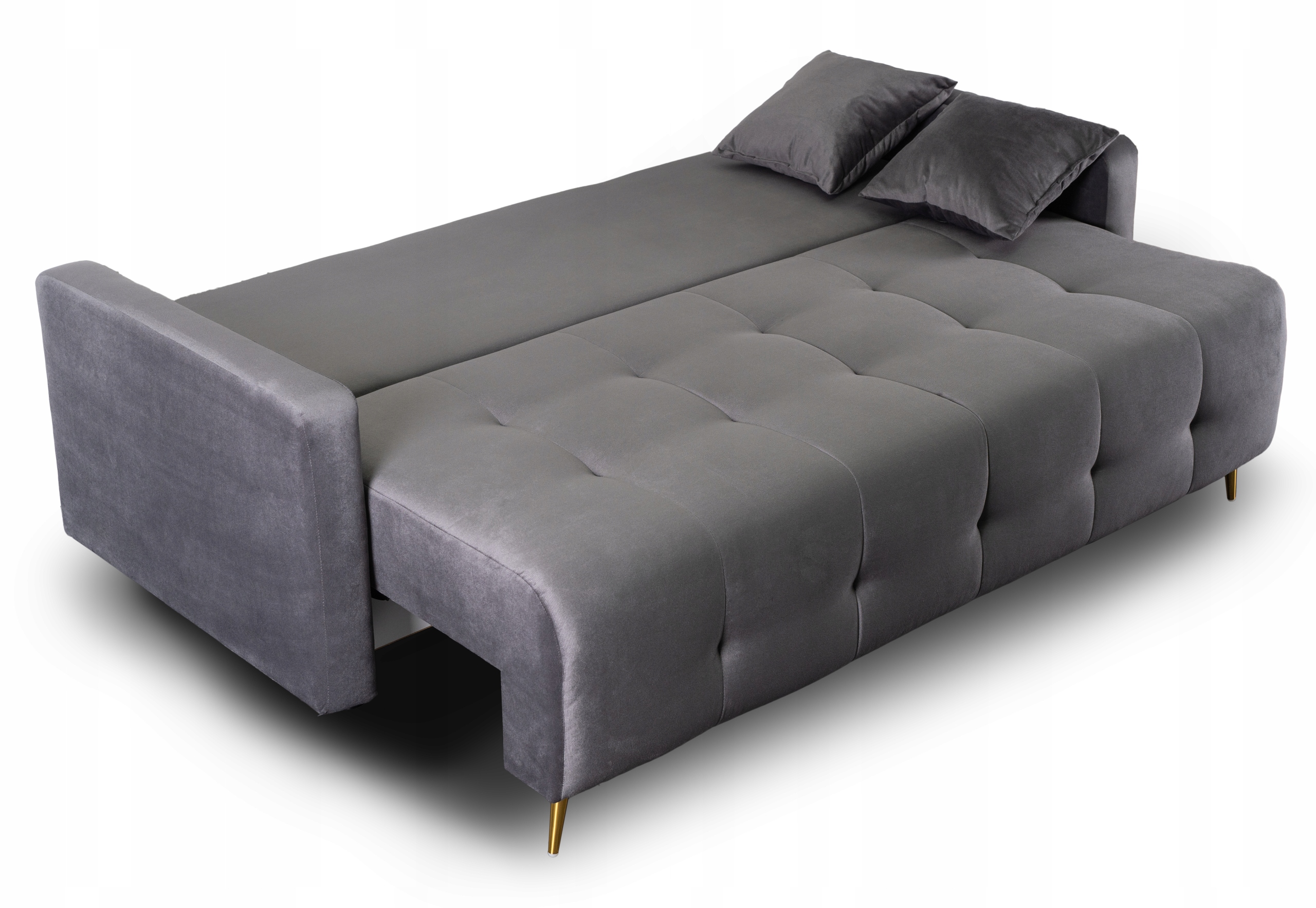 Jedną z głównych zalet kanapy jest funkcja spania, która pozwala na szybkie przekształcenie jej w przestronne łóżko o wymiarach 190x150 cm.