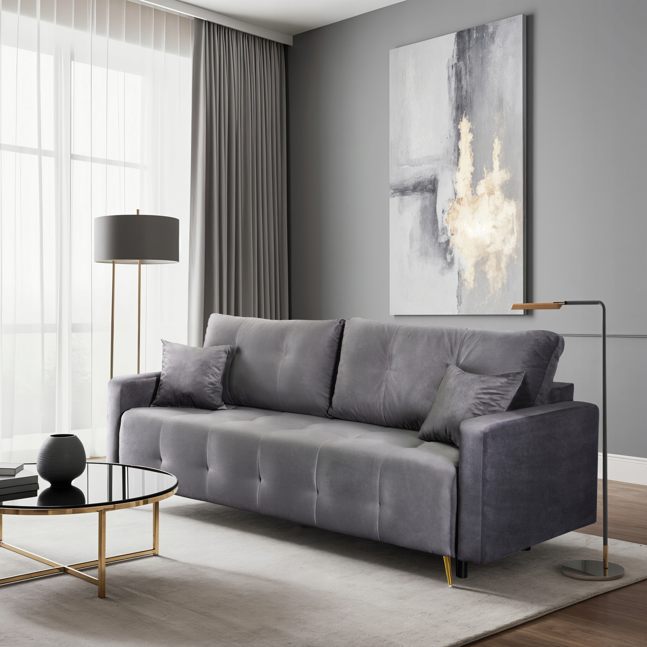 Sofa Rozkładana Kanapa Z Funkcją Spania Wersalka Dwuosobowa Szara SEUL ⭐⭐⭐⭐⭐