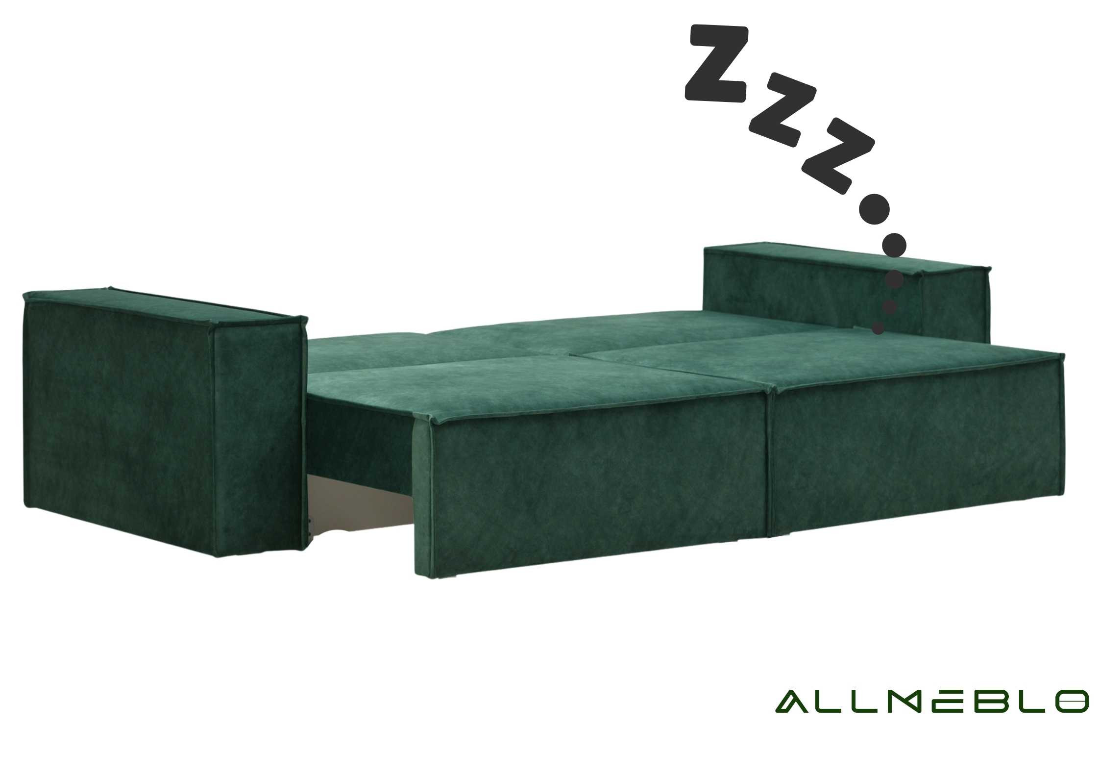 - Sofa z funkcją spania, który idealnie nada się zarówno do małego pokoju w bloku jak i w większych pomieszczeniach.