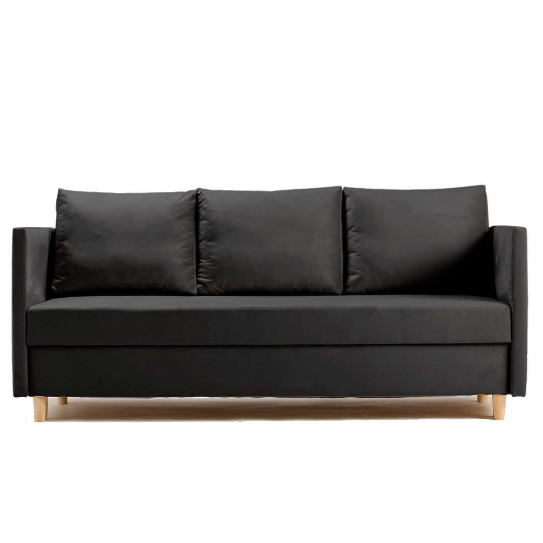 - Sofa z funkcją spania, który idealnie nada się zarówno do małego pokoju w bloku jak i w większych pomieszczeniach.