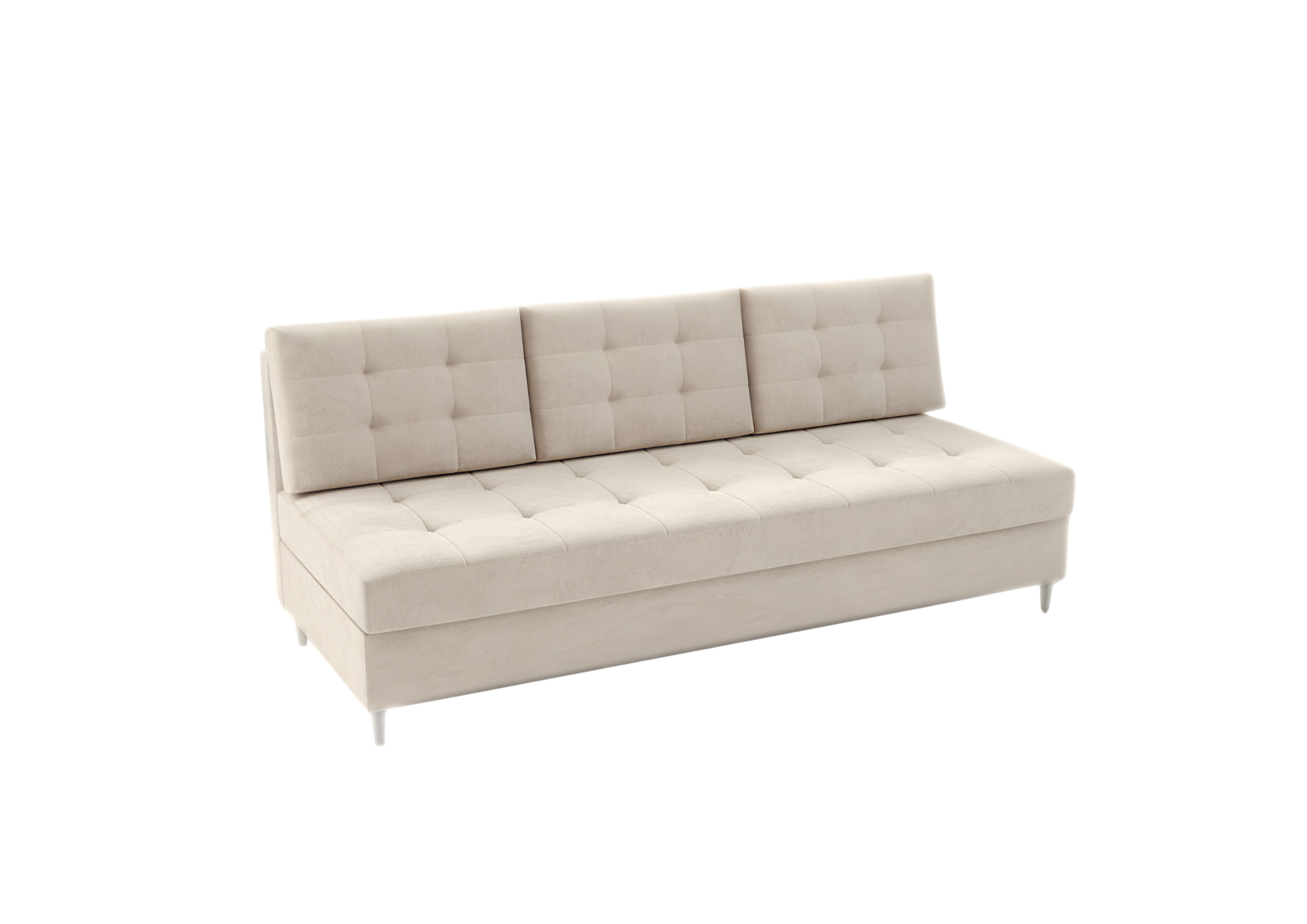 Sofa PERO to połączenie elegancji, komfortu i funkcjonalności w stylu glamour lub boho. Pikowane siedzisko i poduszki nadają jej wyjątkowego charakteru, a wysokie drewniane nogi dodają lekkości i nowoczesnego wyglądu. Dzięki funkcji spania o powierzchni 140×190 cm w kilka chwil zamienisz ją w wygodne łóżko, idealne do codziennego użytku lub dla gości. Pojemnik na pościel pozwoli Ci zachować porządek, a sprężyny bonell zapewnią trwałość i wysoki komfort siedzenia oraz snu. Sofa PERO to stylowy mebel, który doskonale dopełni każde wnętrze – od eleganckiego salonu po przytulny pokój gościnny.