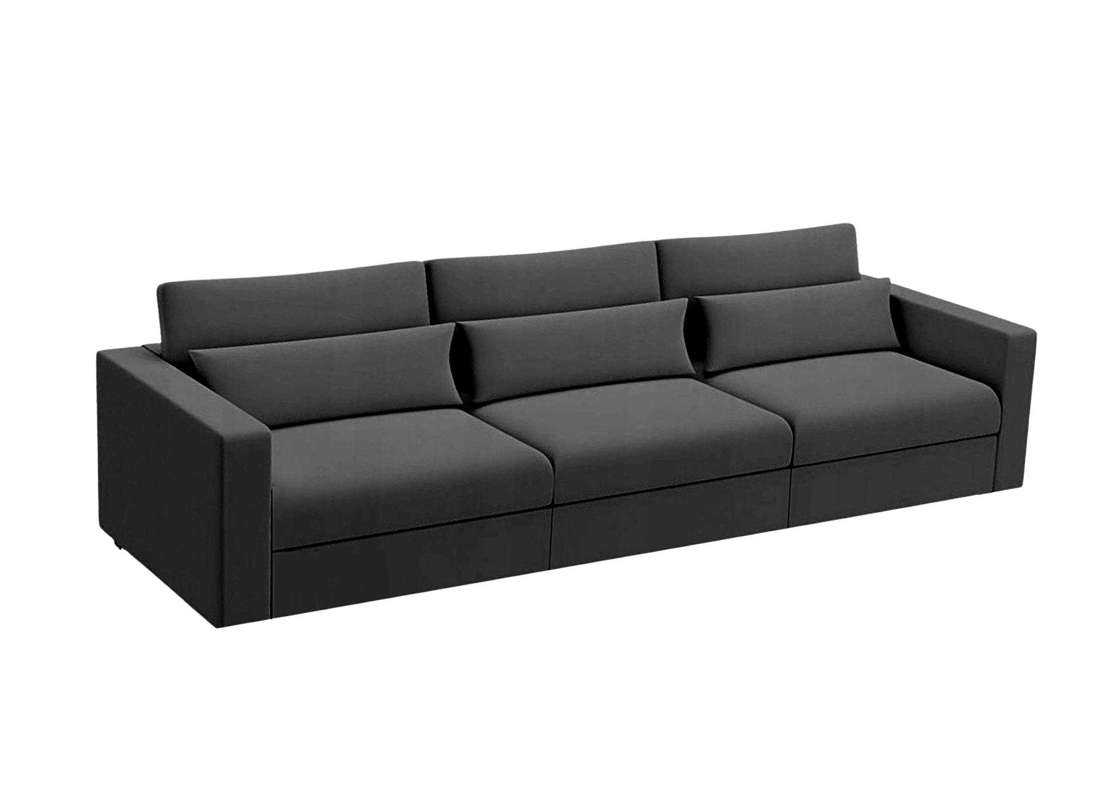 Duża elegancka sofa modułowa z poduszkami podlędźwiowymi. Każdy moduł rozkładany oddzielnie dzięki czemu stworzycie dużą powierzchnię spania - aż 240cm długości. Jest więc to kanapa idealna dla wysokich ludzi.