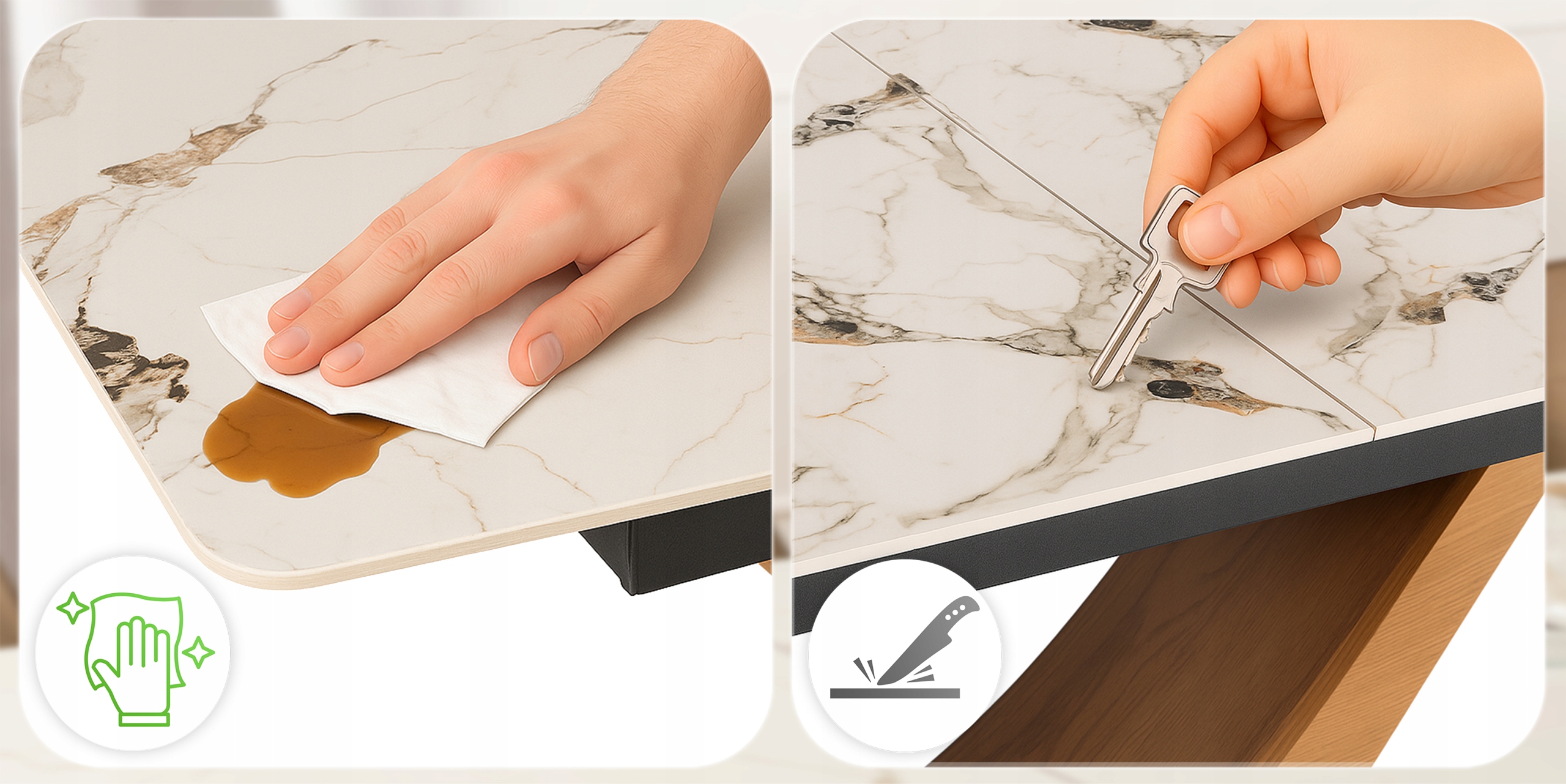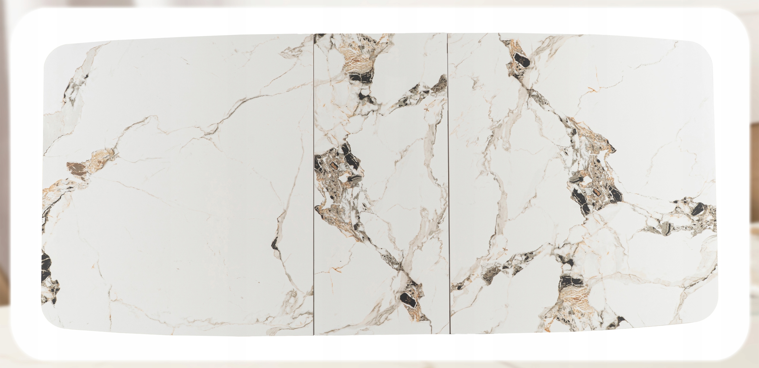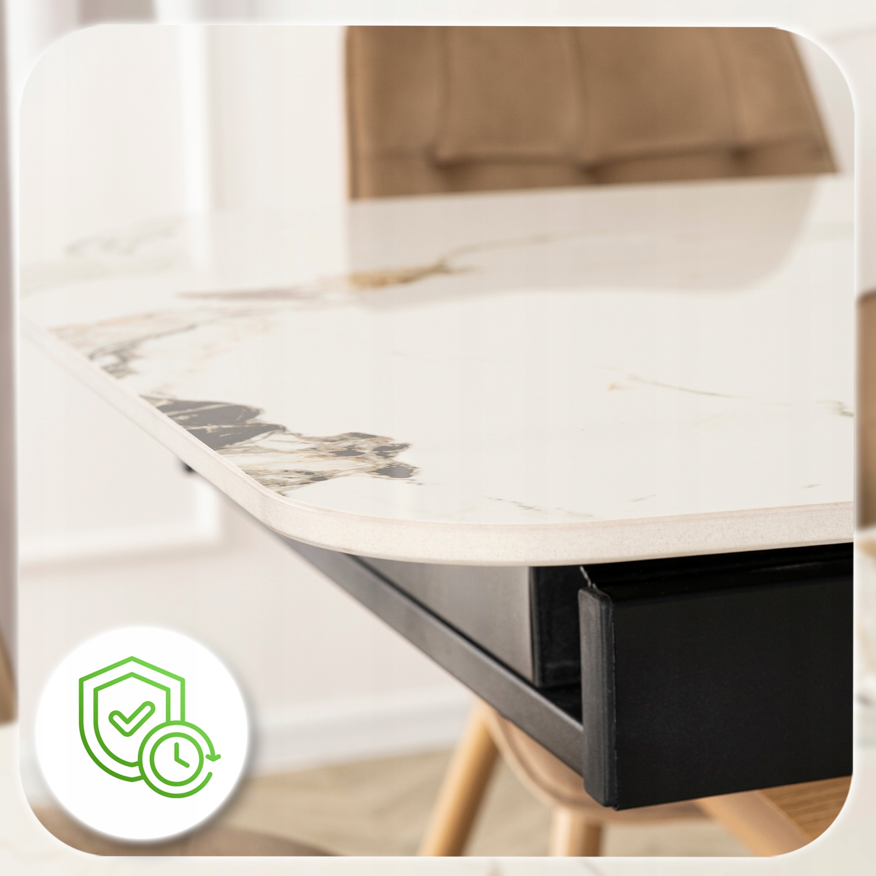 - Ceramika klasy premium – blat stołu jest niezwykle trwały, odporny na zarysowania i wysokie temperatury.