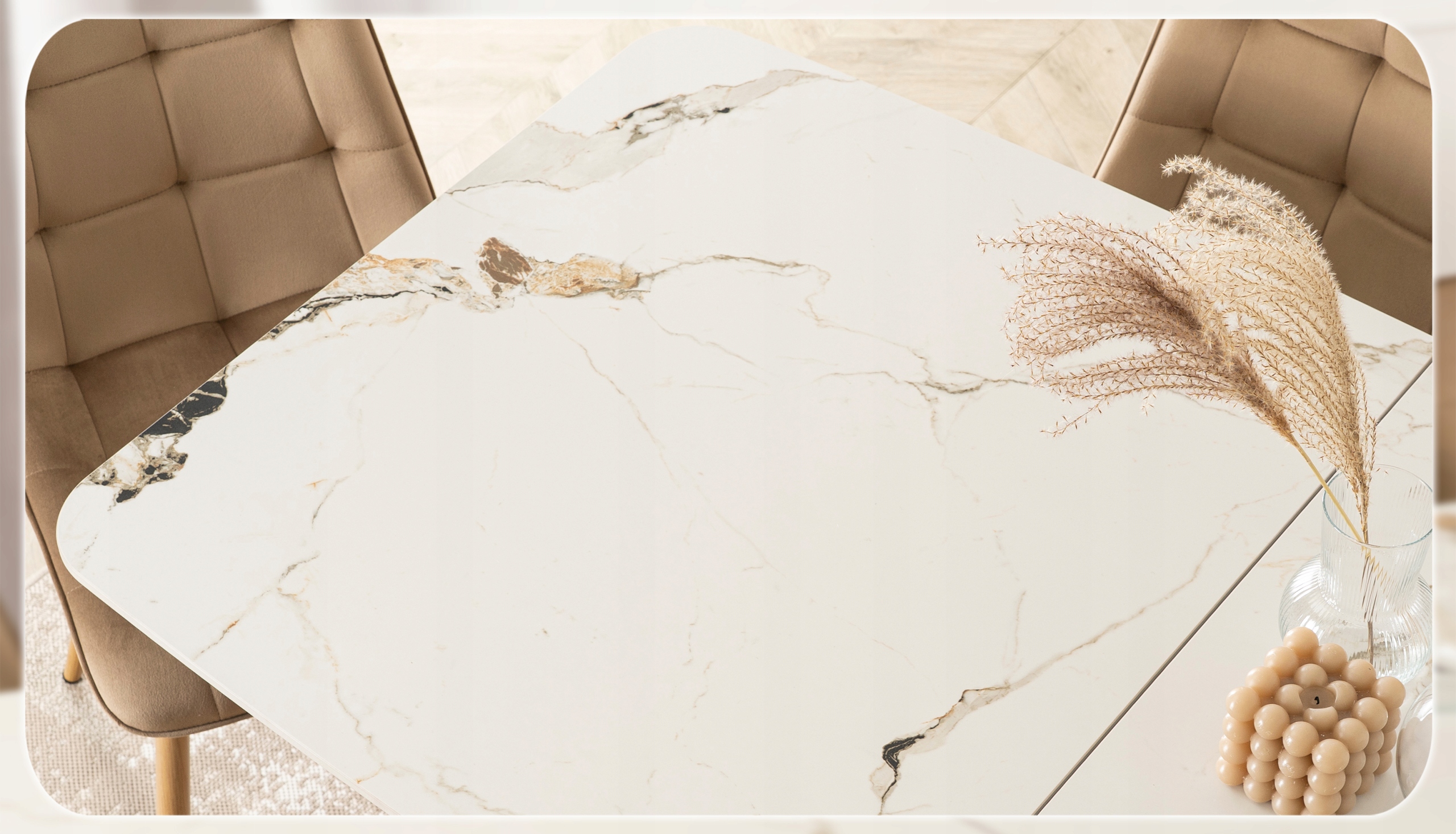 - Blat stołu ALICANTE wykonany jest z ceramiki klasy premium – to materiał, który łączy w sobie wyjątkową trwałość z eleganckim wykończeniem.