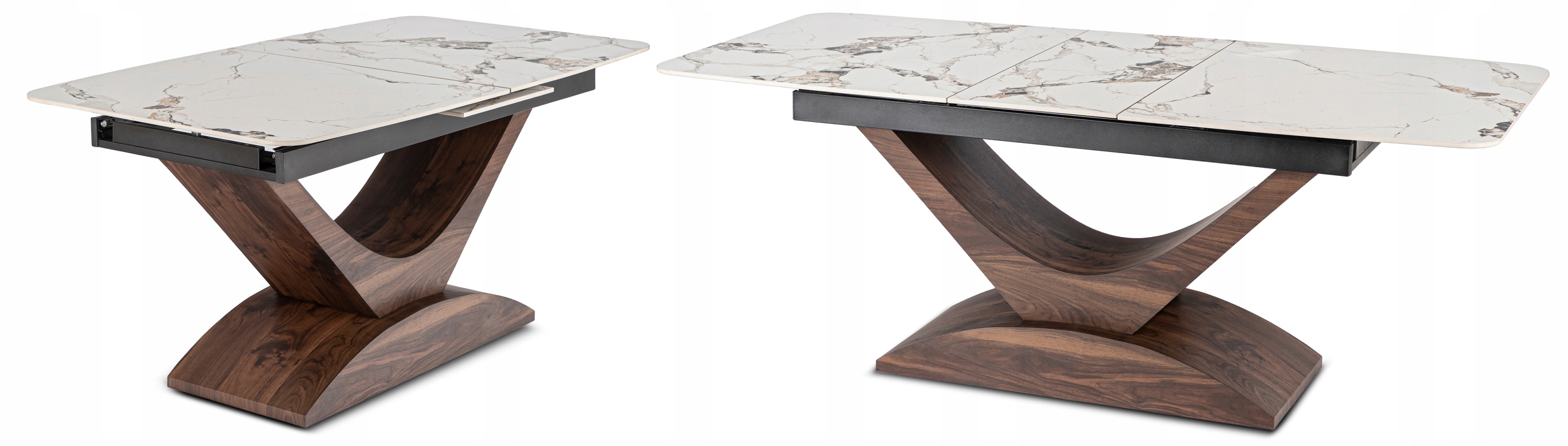 Dzięki szybkiemu i wygodnemu mechanizmowi rozkładania, możesz z łatwością zwiększyć długość stołu z 160 cm do 200 cm. Wszystko za sprawą ukrytej wkładki, która wysuwa się płynnie na prowadnicy ze środka blatu.