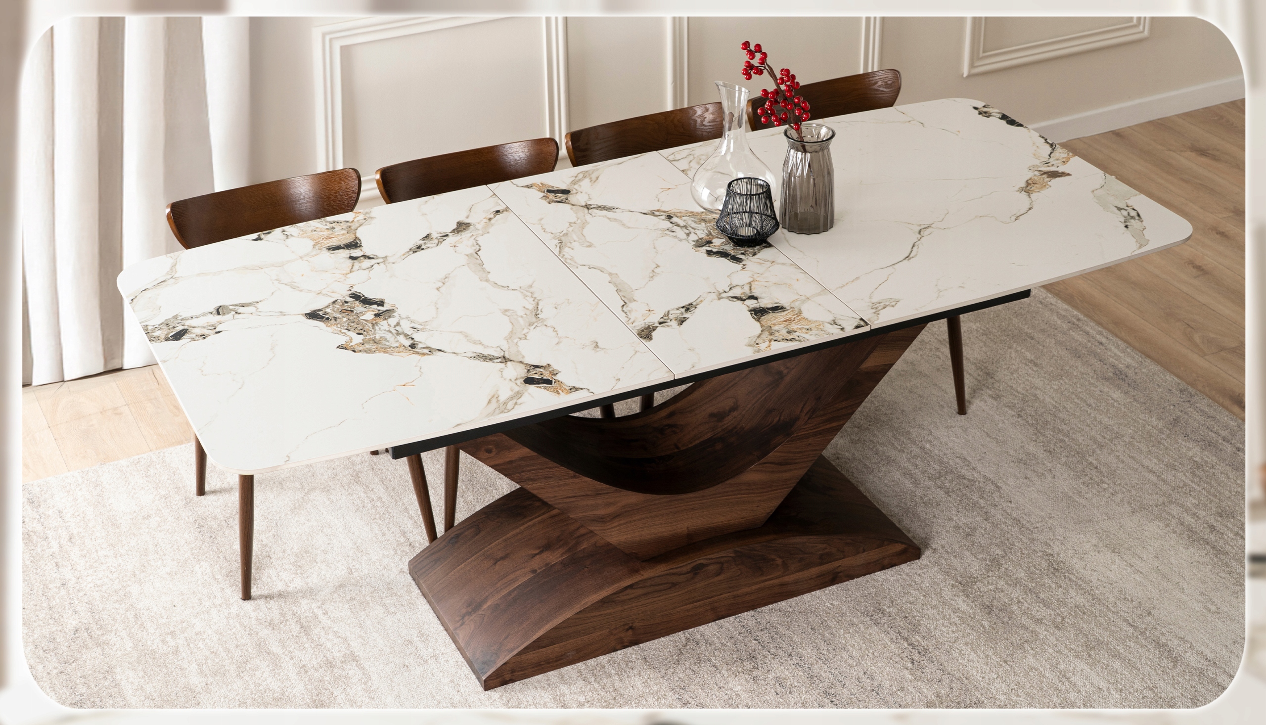 Stół ALICANTE to kwintesencja luksusu zaklęta w ceramice klasy premium, połączenie wyrafinowanego stylu i perfekcyjnego wykonania, które przyciąga wzrok i wzbudza zachwyt.