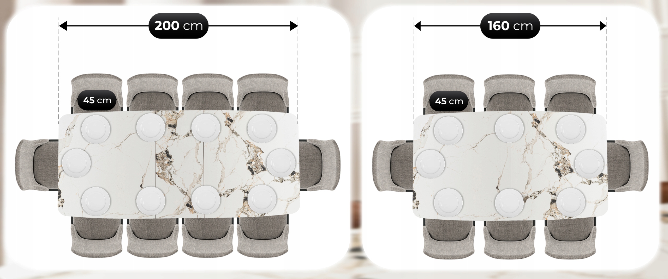 Stół ALICANTE pozwala na komfortowe rozmieszczenie aż 10 osób przy stole, dzięki czemu sprawdza się zarówno na co dzień, jak i w trakcie większych uroczystości.