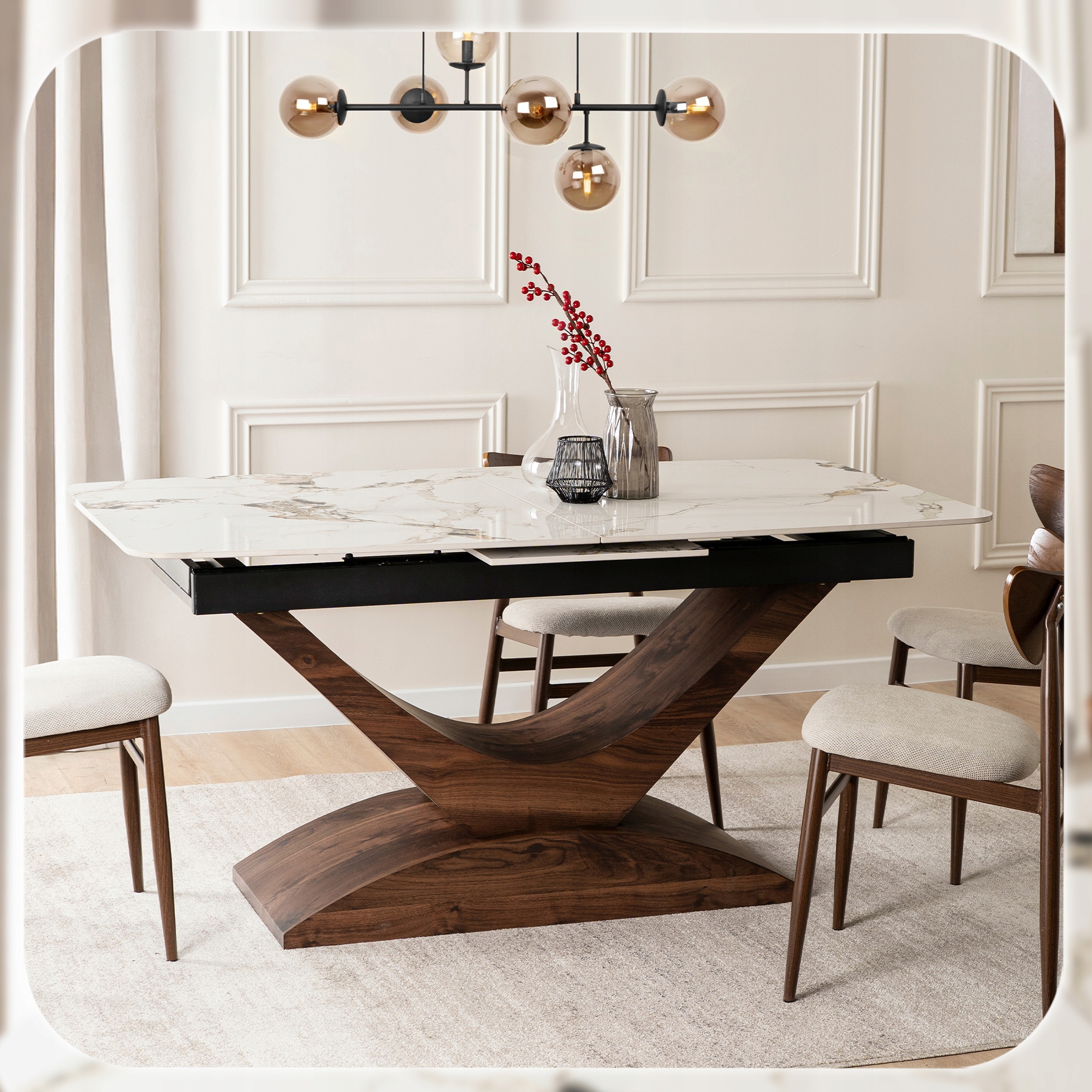 Jeden stół, wiele możliwości. ALICANTE zachwyca elegancją i funkcjonalnością – doskonale sprawdzi się w jadalni, salonie i kuchni, a także w przestrzeniach komercyjnych, takich jak restauracje, kawiarnie czy hotele.