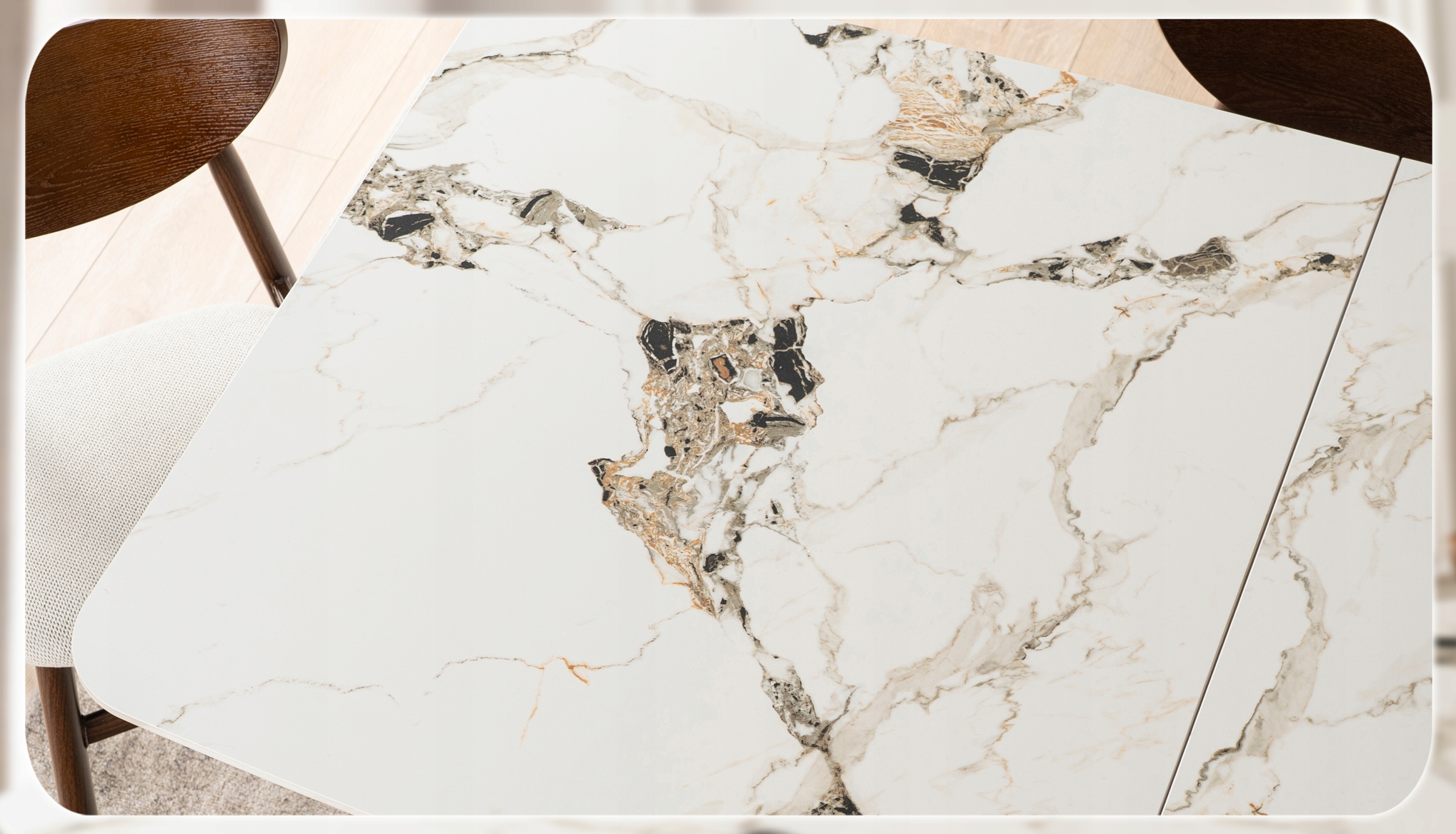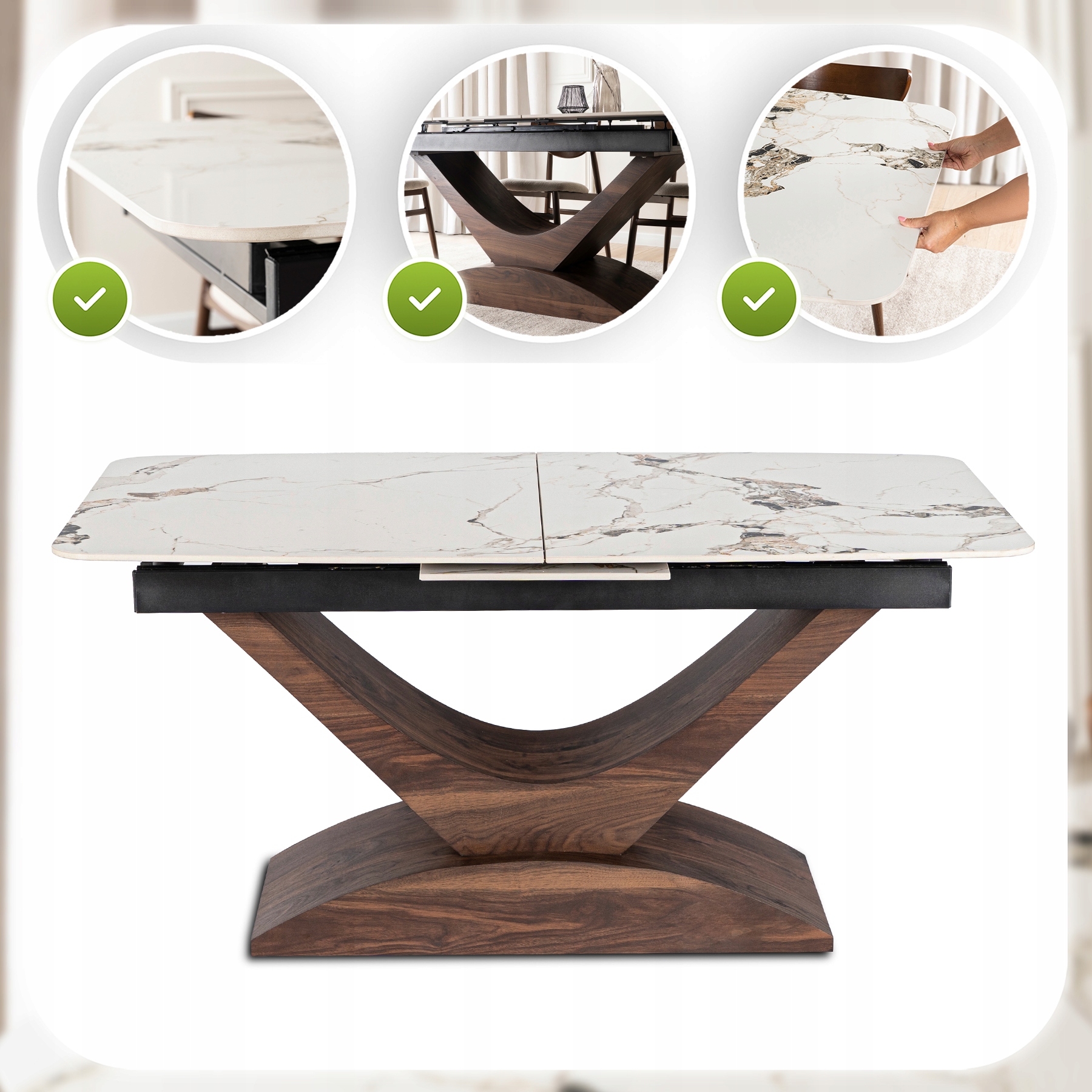 - Ceramika klasy premium – blat stołu jest niezwykle trwały, odporny na zarysowania i wysokie temperatury.