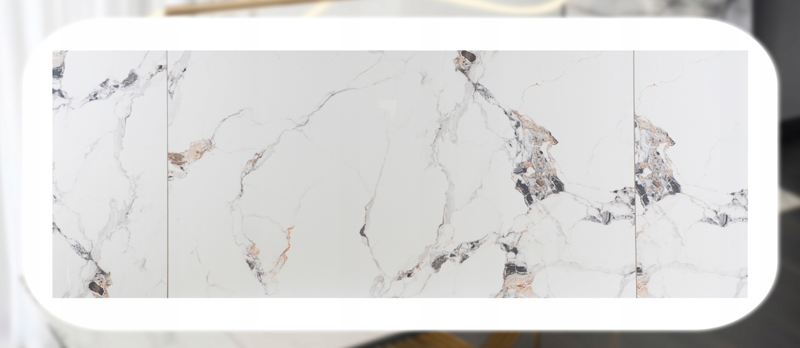 - Blat ceramiczny klasy premium w połysku – trwały, elegancki, w kolorze białego marmuru.