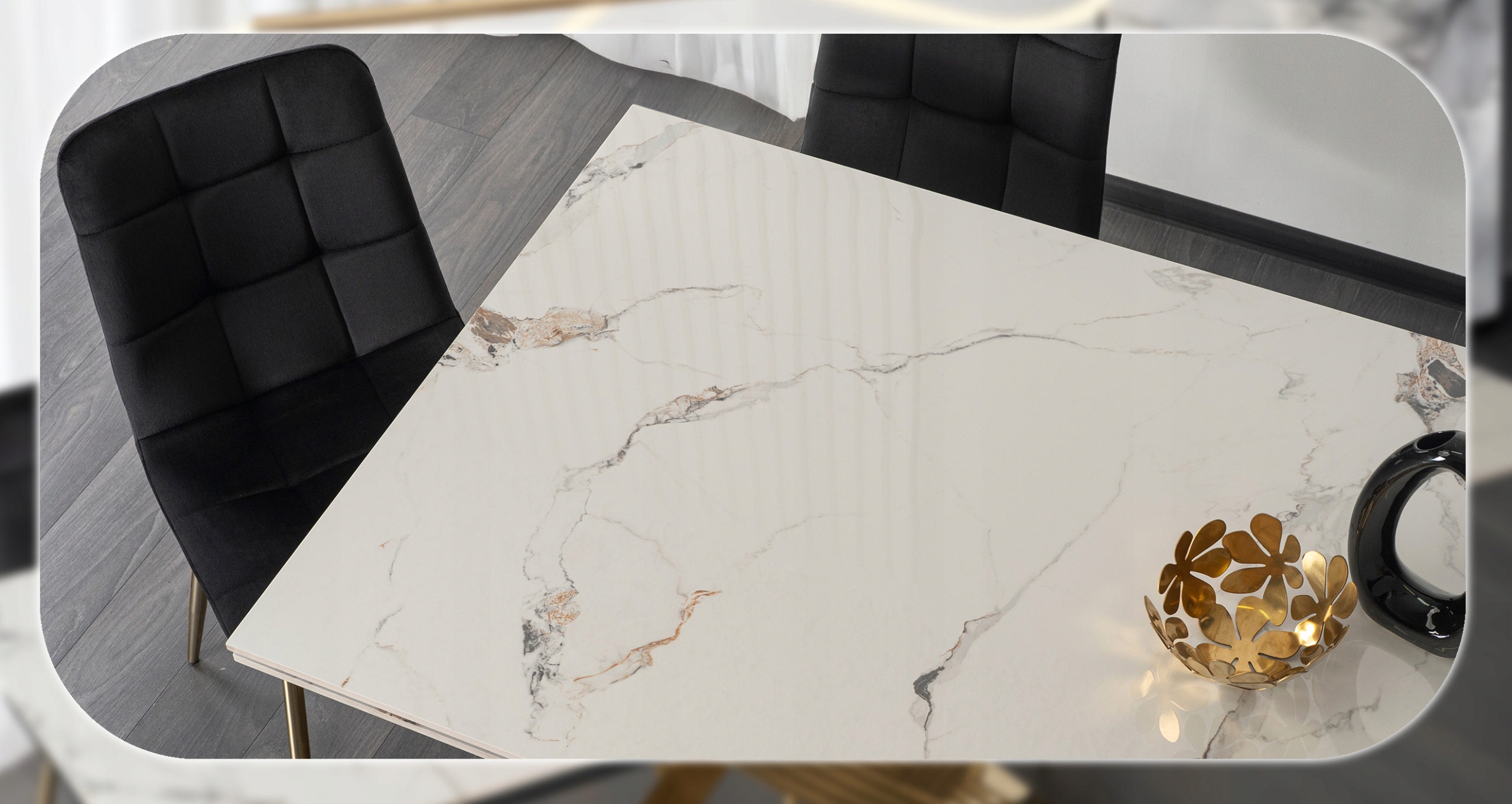 - Blat stołu IBIZA wykonany jest z ceramiki klasy premium – to materiał, który łączy w sobie wyjątkową trwałość z eleganckim wykończeniem.