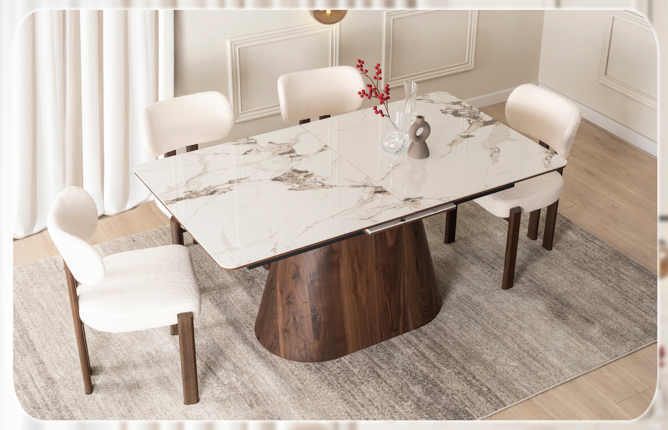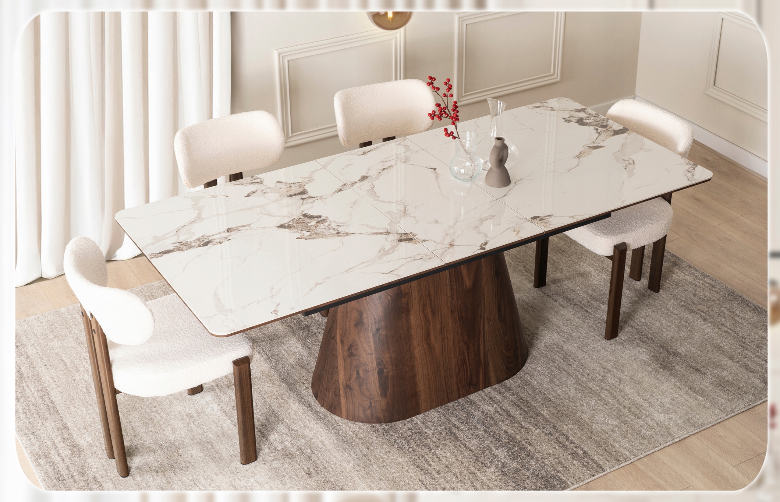 Stół LIZBONA to kwintesencja luksusu zaklęta w ceramice klasy premium, połączenie wyrafinowanego stylu i perfekcyjnego wykonania, które przyciąga wzrok i wzbudza zachwyt.