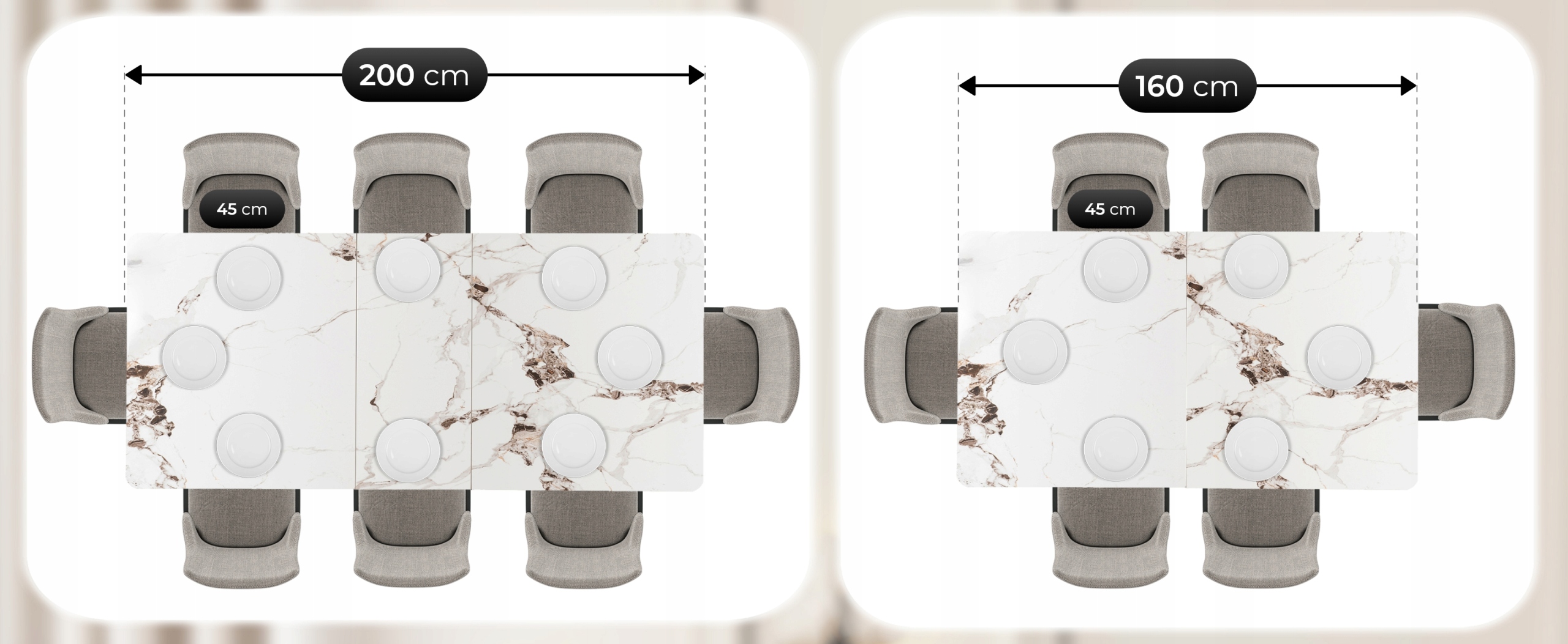Dzięki szybkiemu i wygodnemu mechanizmowi rozkładania, możesz z łatwością zwiększyć długość stołu z 160 cm do 200 cm. Wszystko za sprawą ukrytej wkładki, która wysuwa się płynnie na prowadnicy ze środka blatu.