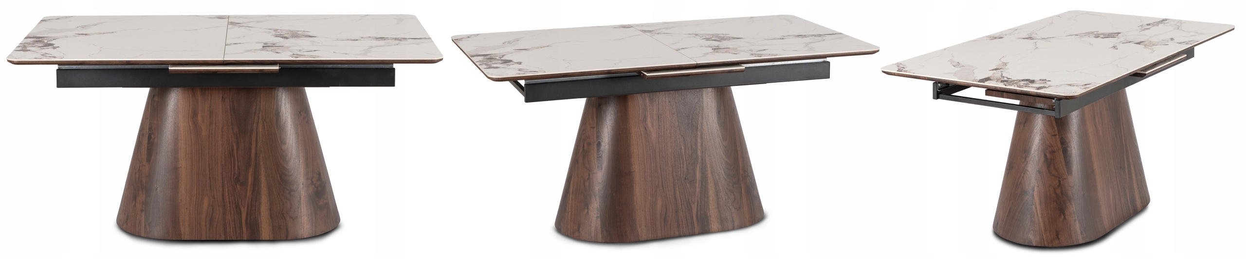 - Mechanizm rozkładania do 200 cm – stół wyposażono w jedną dyskretnie ukrytą wkładkę, która płynnie wysuwa się na prowadnicach ze środka blatu.
