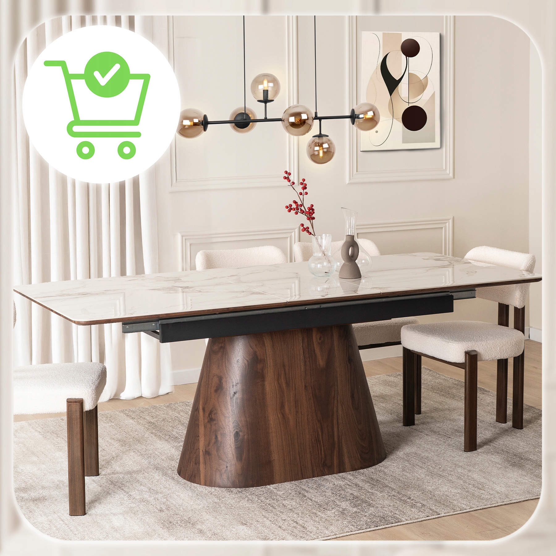 Zdecydowanie tak. Połączenie białego, eleganckiego blatu z podstawą w kolorze orzecha sprawia, że stół harmonijnie komponuje się zarówno z nowoczesnymi, jak i klasycznymi wnętrzami.