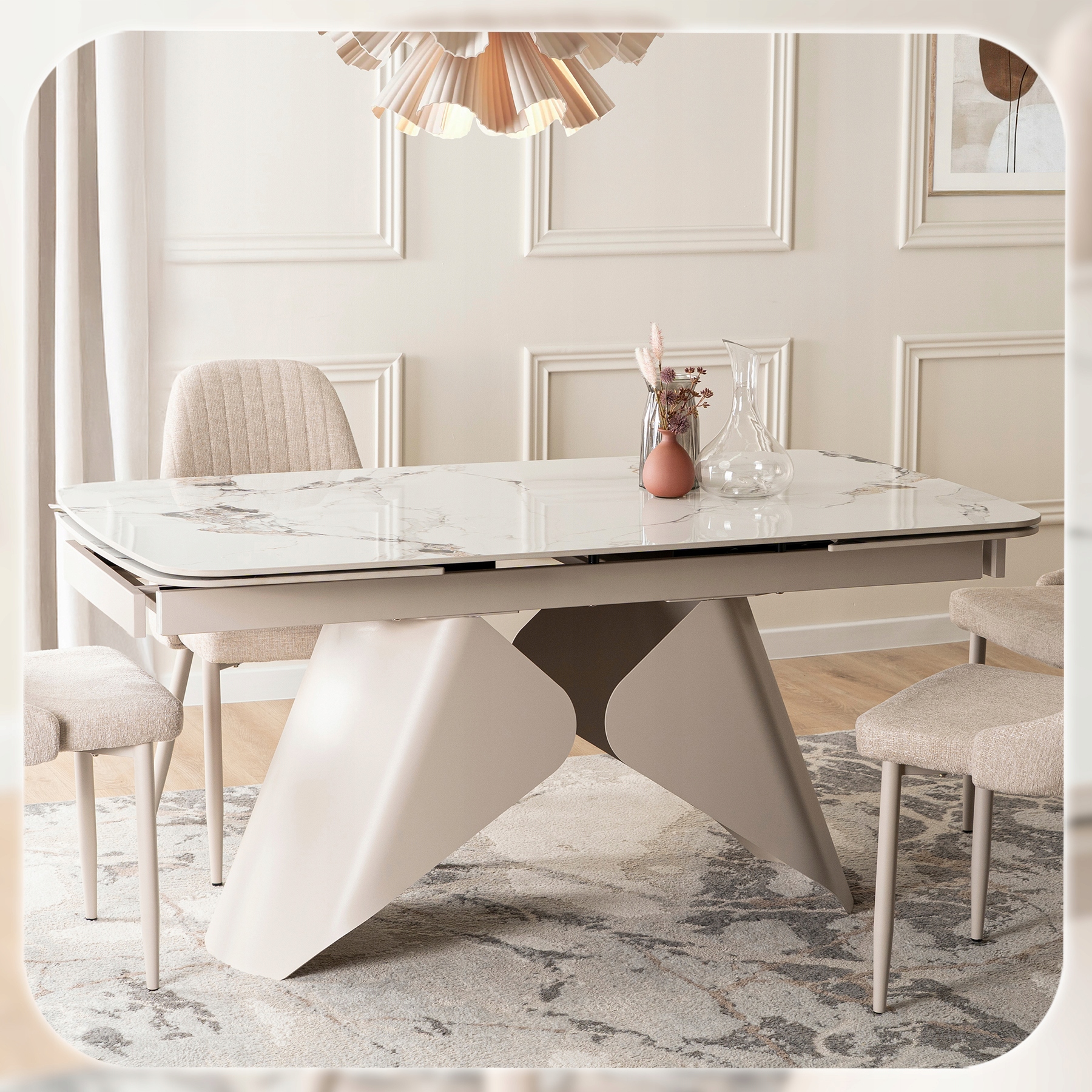 Ten stół to kwintesencja luksusu zaklęta w ceramice klasy premium, połączenie wyrafinowanego stylu i perfekcyjnego wykonania, które przyciąga wzrok i wzbudza zachwyt.