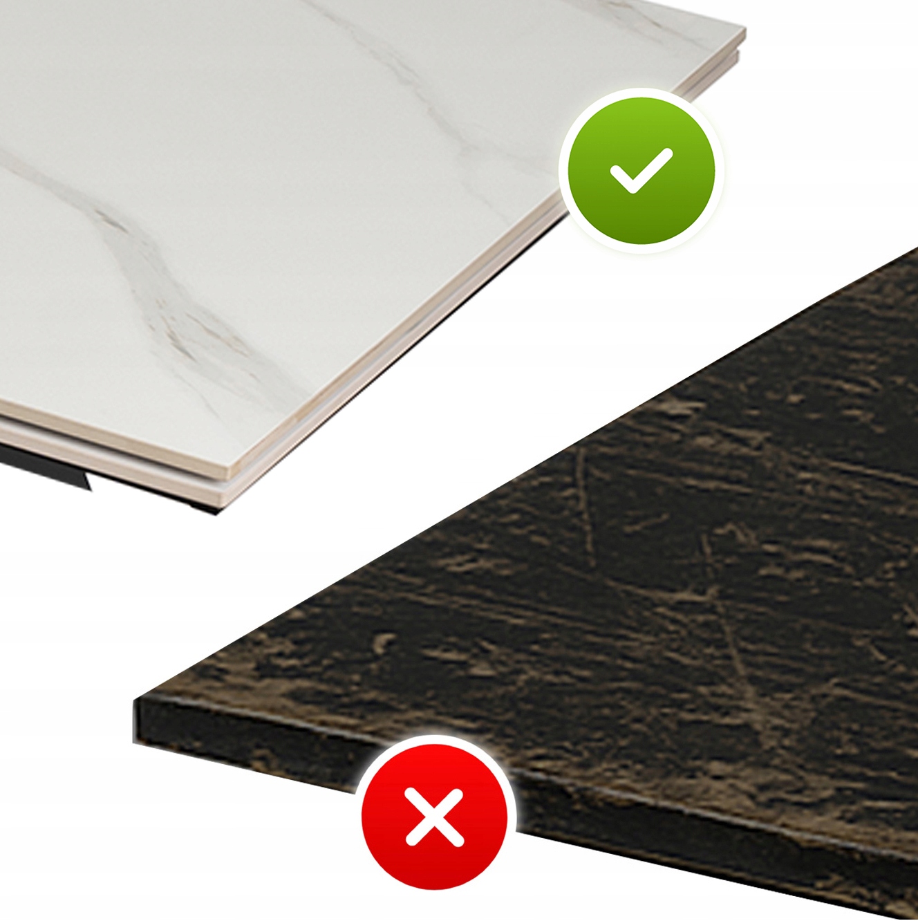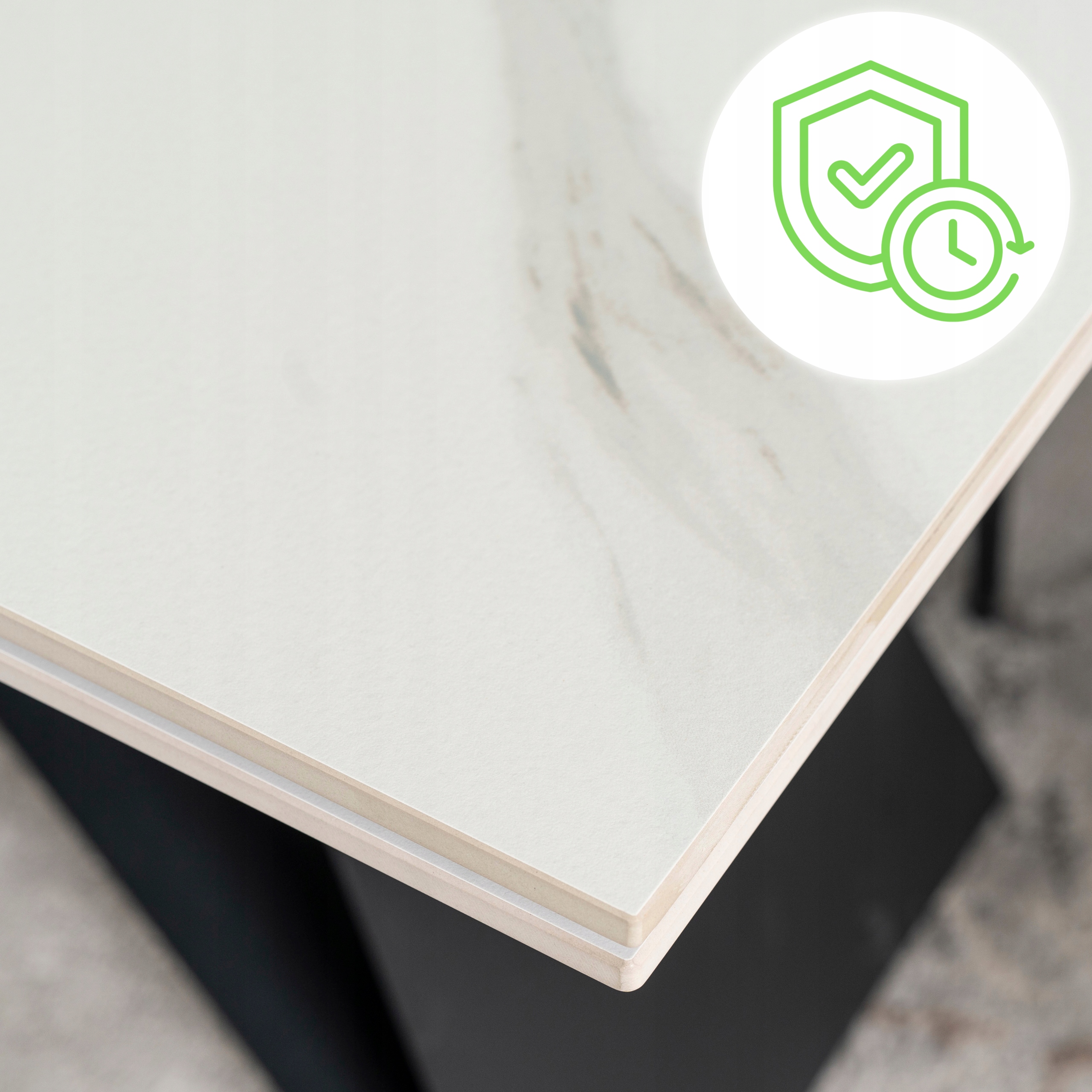 - Ceramika klasy premium – blat stołu jest niezwykle trwały, odporny na zarysowania i wysokie temperatury.