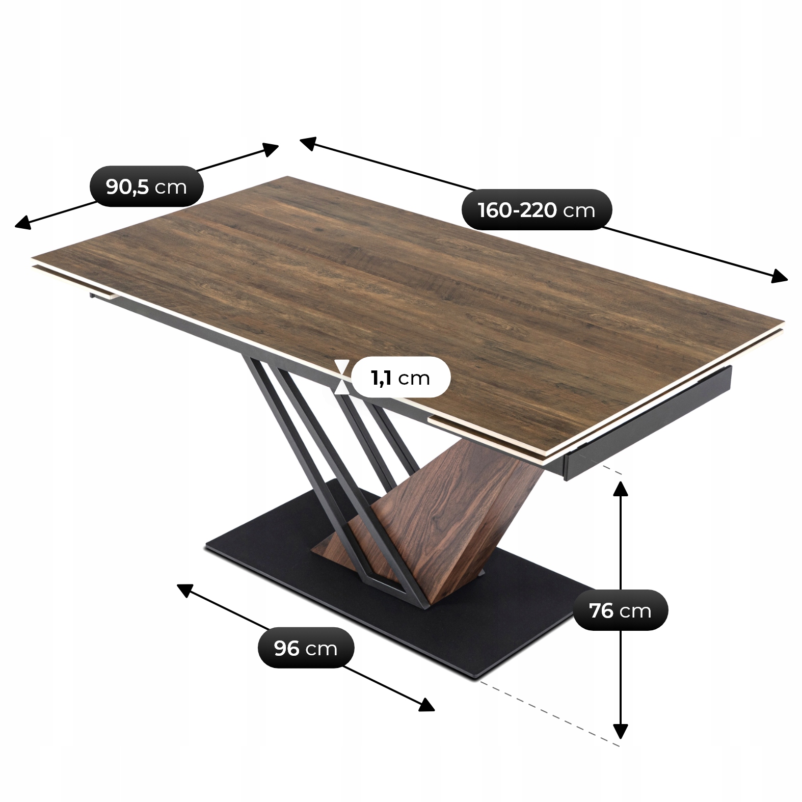 Stół REX o wymiarach 160-220 x 90 x 77,5 cm to doskonały wybór do kuchni, jadalni, salonu. Każdy jego detal został zaprojektowany z myślą o tych, którzy cenią piękno, trwałość i wyjątkowy wygląd.