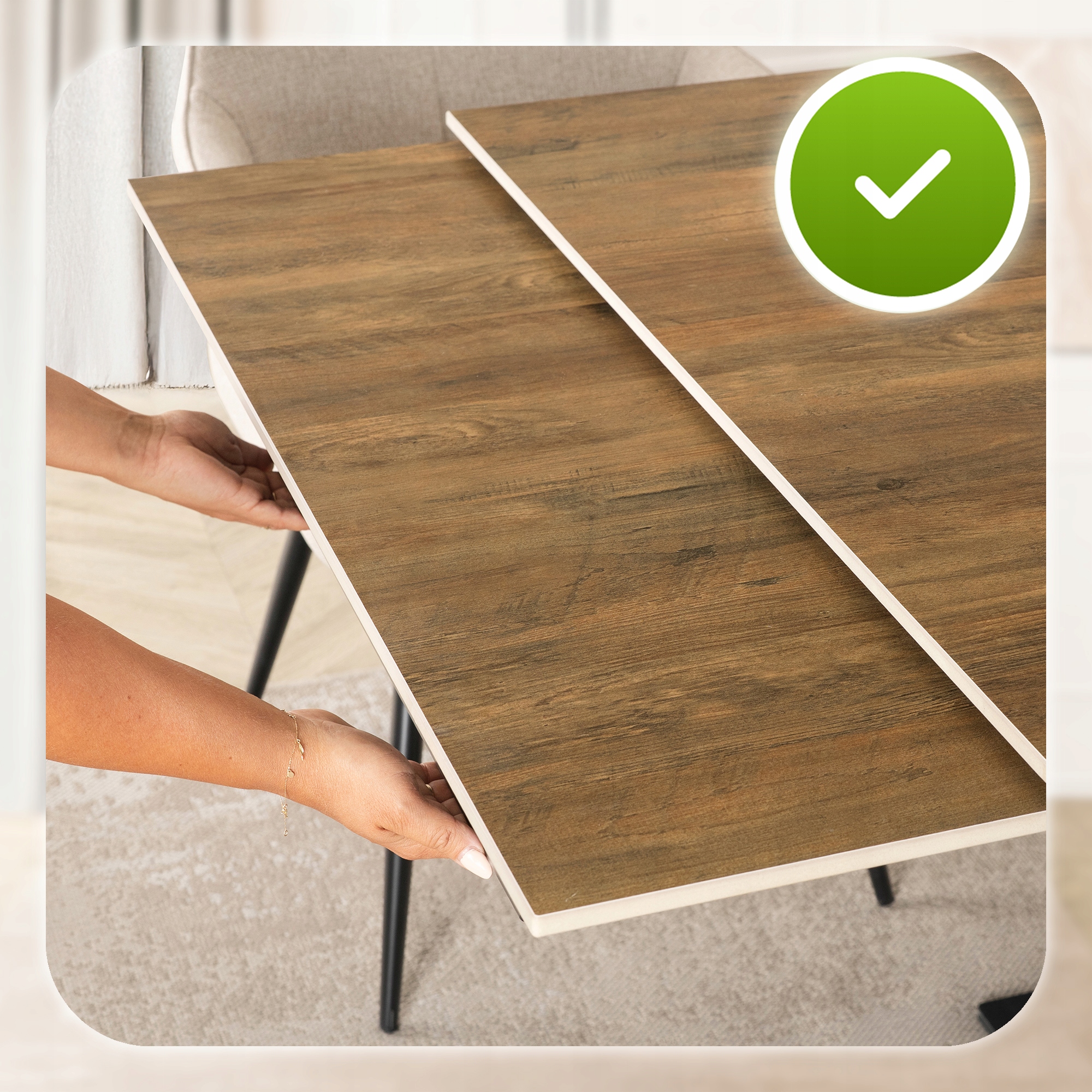 Prosty system rozkładania sprawia, że zmiana wielkości stołu to kwestia kilku sekund – bez wysiłku, bez dodatkowych elementów, bez kompromisów.