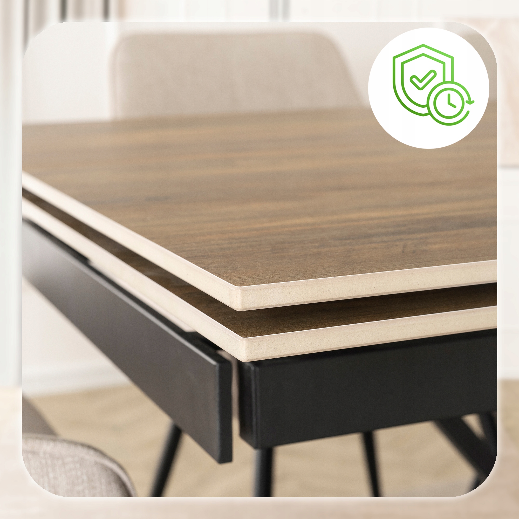 - Blat ceramiczny klasy premium – trwały, elegancki, w kolorze drewna.