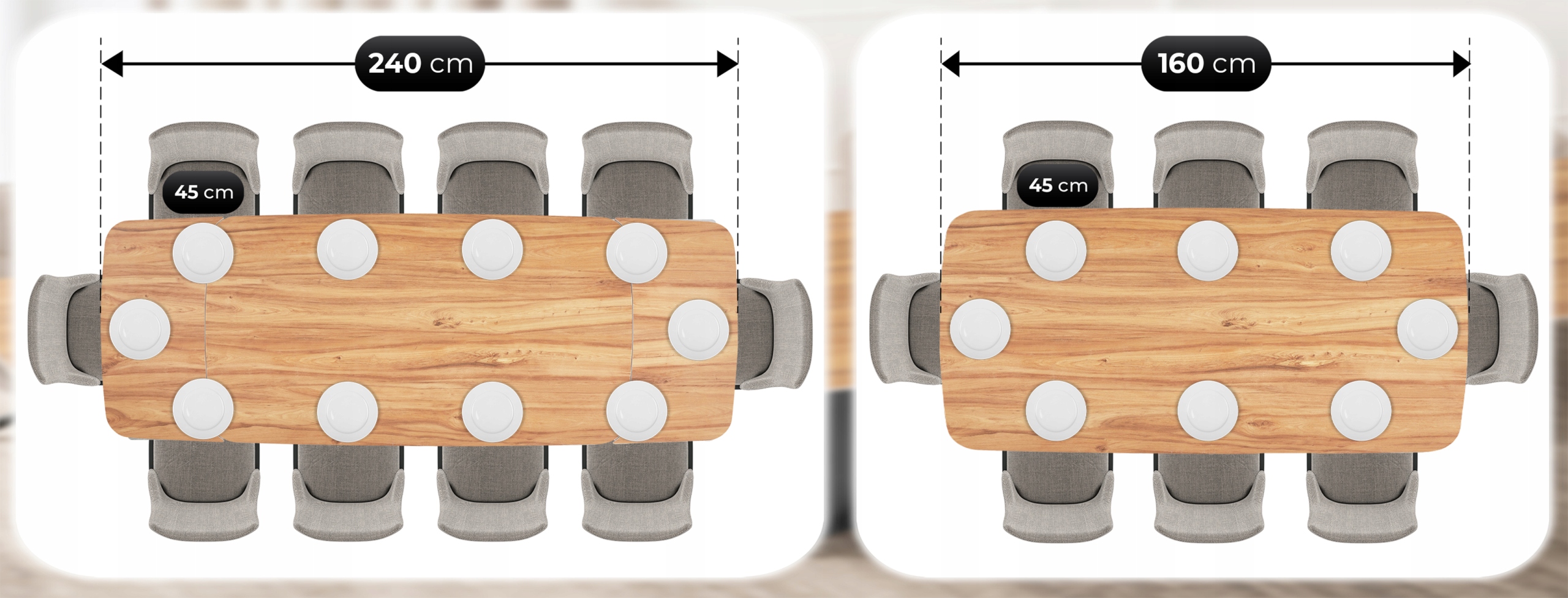 Po rozłożeniu do 240 cm stół pomieści nawet 10 osób, zapewniając każdemu wygodną przestrzeń. To idealne rozwiązanie na święta, przyjęcia i większe spotkania rodzinne.