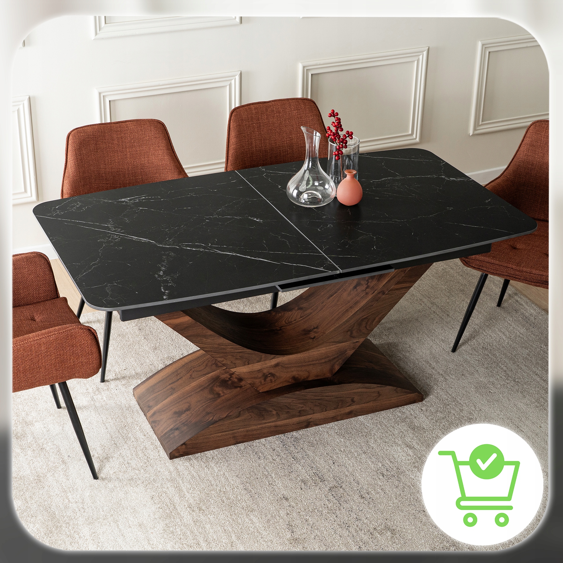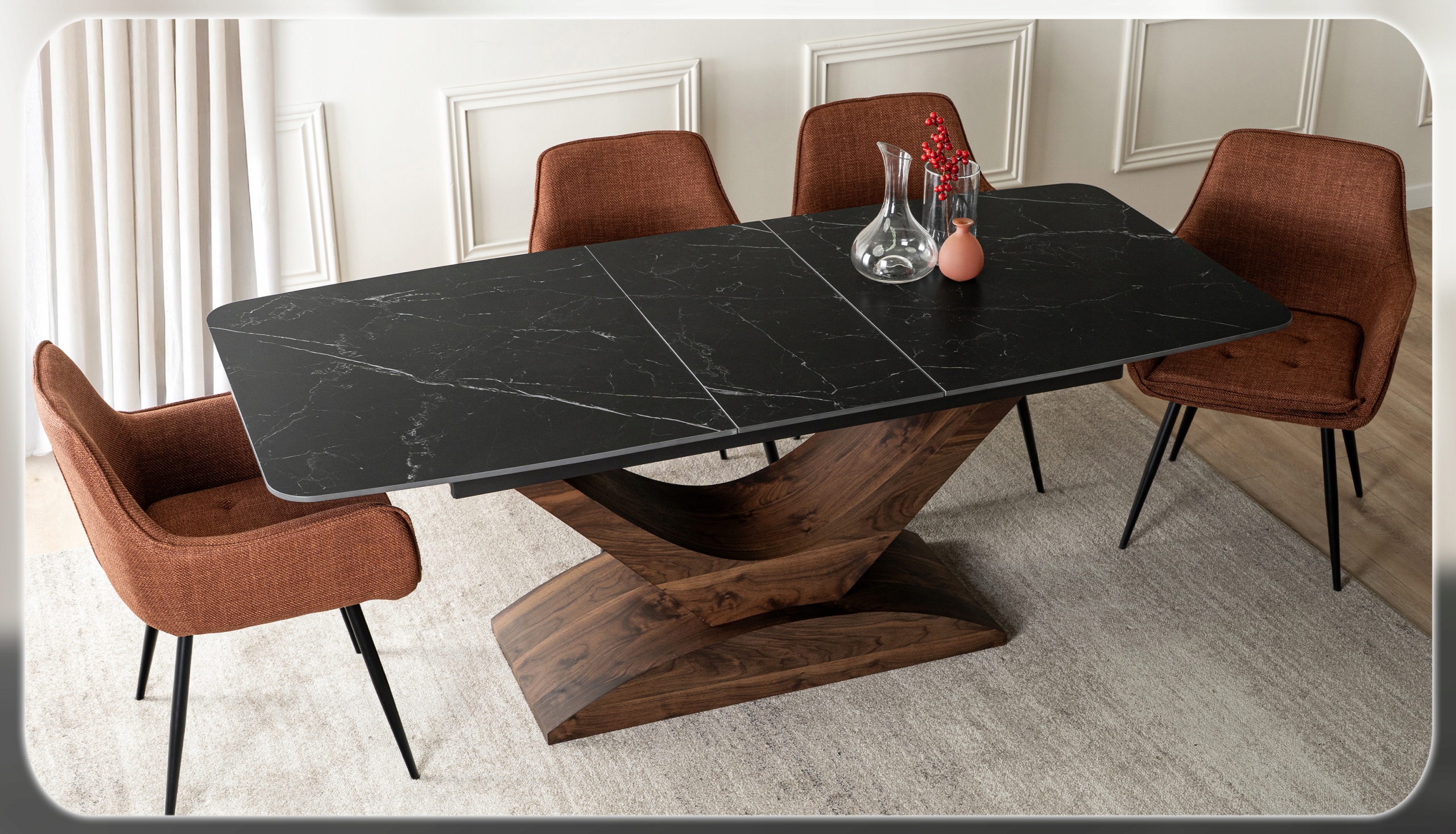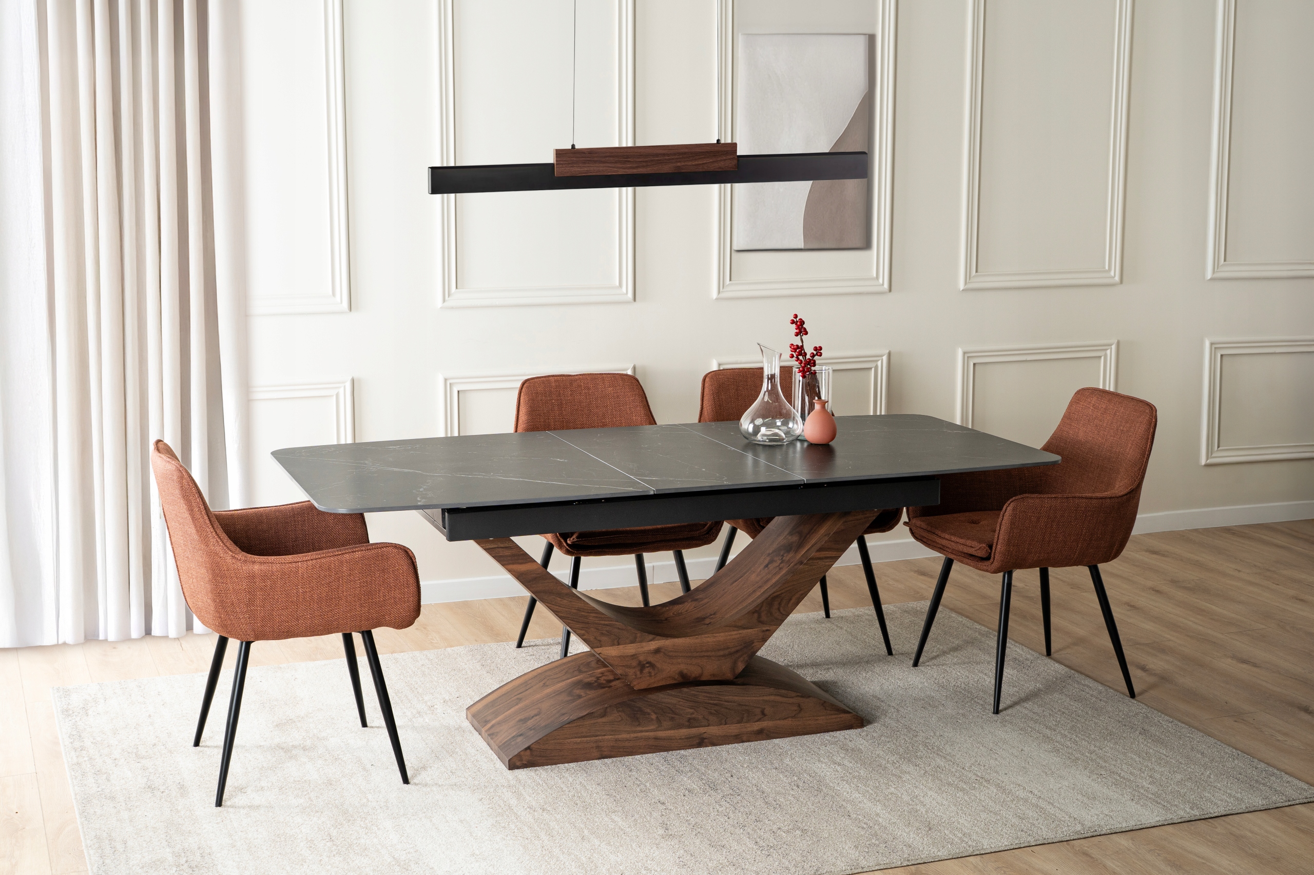 Jeden stół, wiele możliwości. ALICANTE zachwyca elegancją i funkcjonalnością – doskonale sprawdzi się w jadalni czy salonie, a także w przestrzeniach komercyjnych, takich jak restauracje, kawiarnie czy hotele.