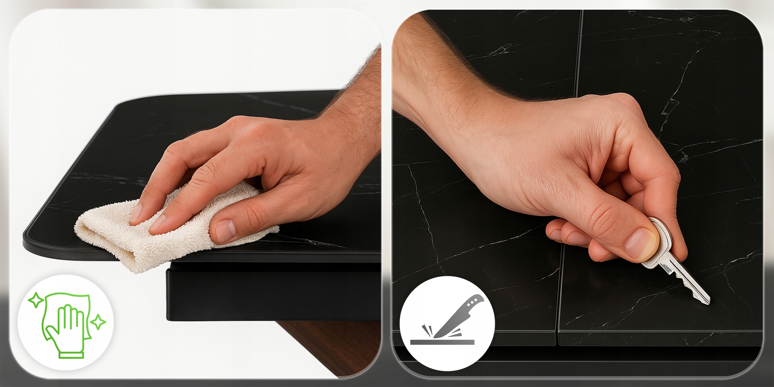 - Odporność na zarysowania - Nasz blat nie boi się codziennych wyzwań – klucze, naczynia, akcesoria kuchenne.