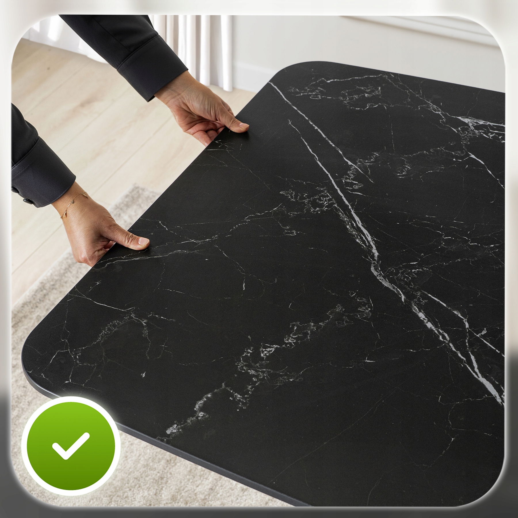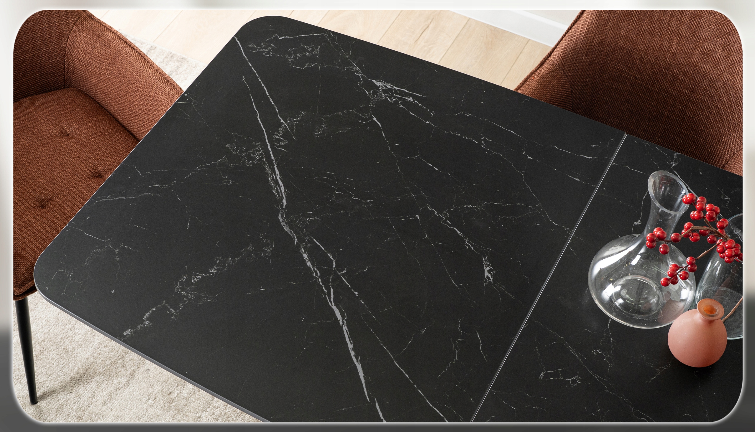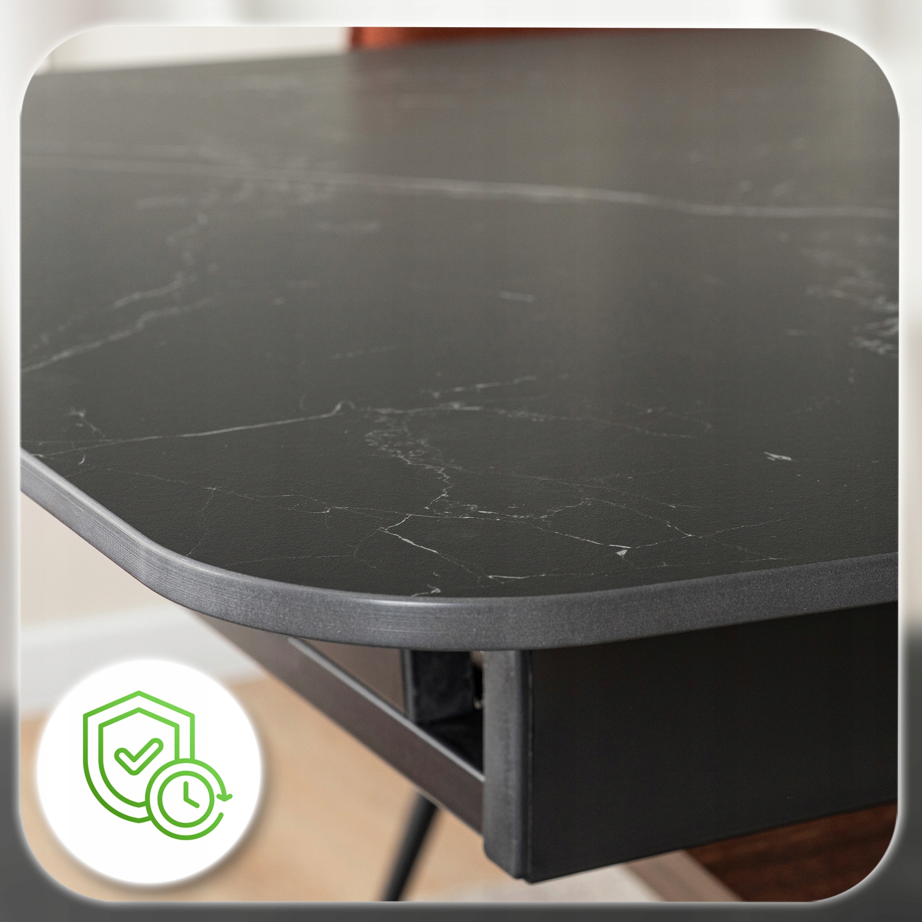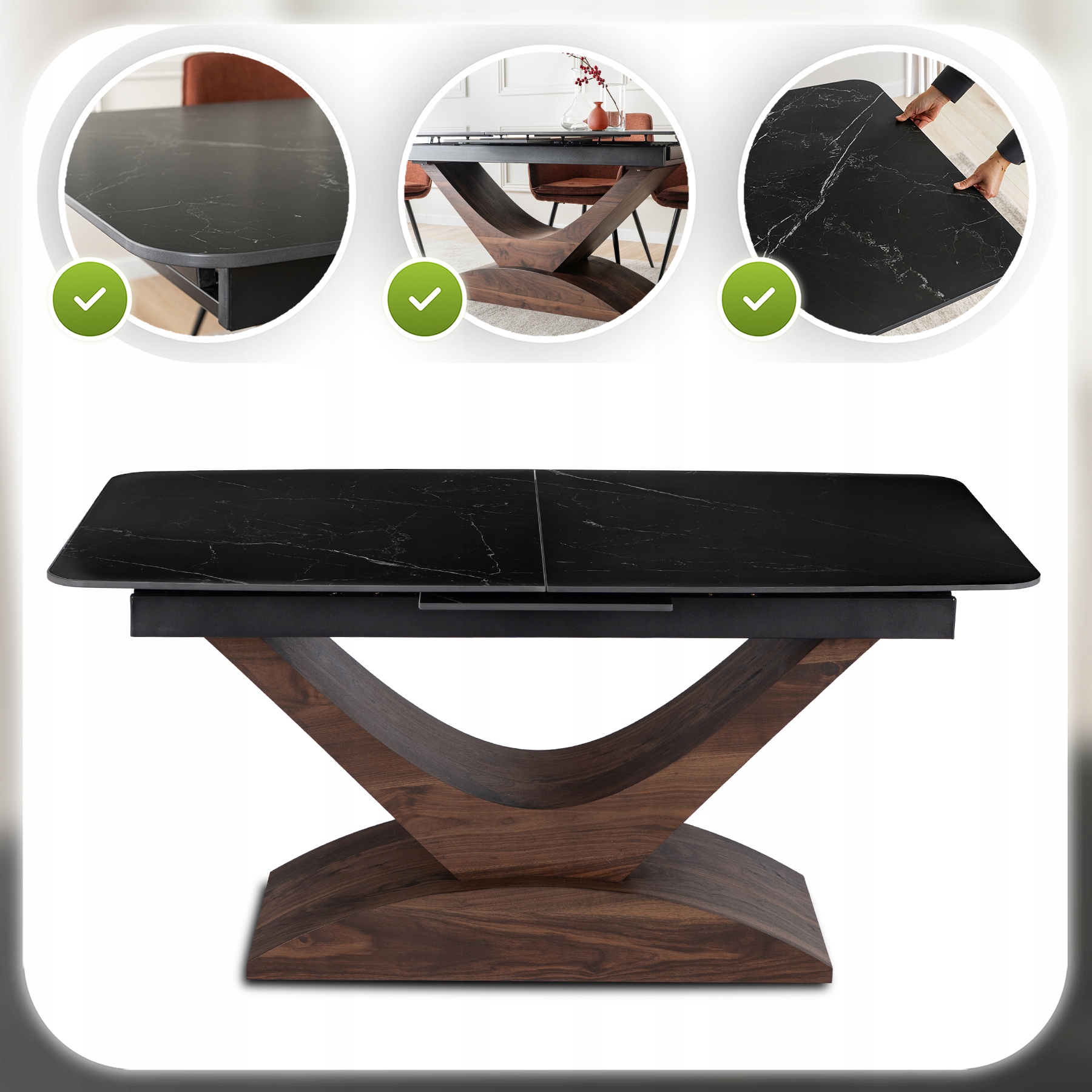 - Ceramika klasy premium – blat stołu jest niezwykle trwały, odporny na zarysowania i wysokie temperatury.
