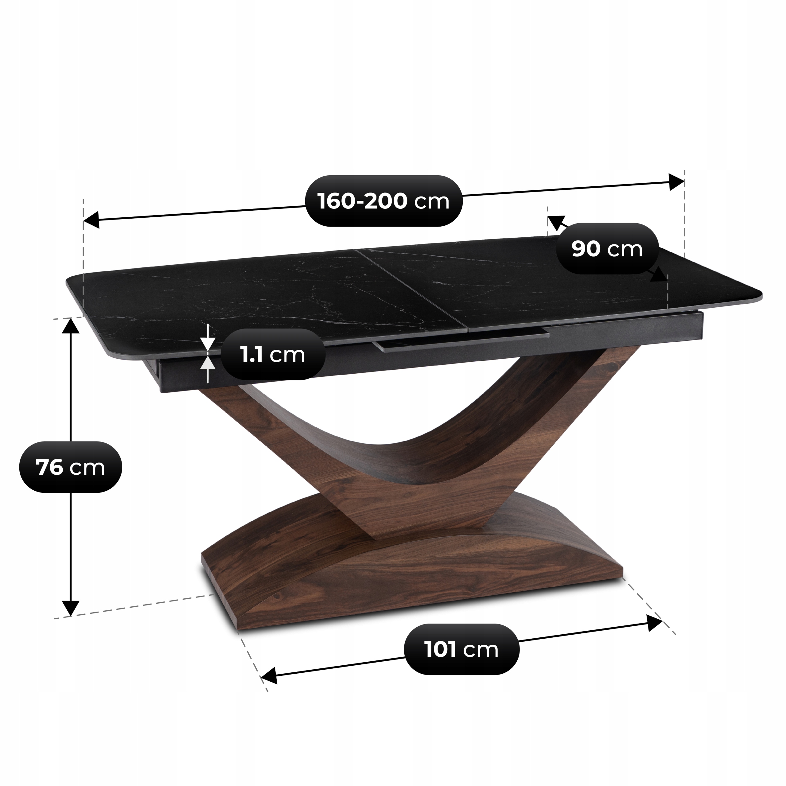 Dzięki szybkiemu i wygodnemu mechanizmowi rozkładania, możesz z łatwością zwiększyć długość stołu z 160 cm do 200 cm. Wszystko za sprawą ukrytej wkładki, która wysuwa się płynnie na prowadnicy ze środka blatu.
