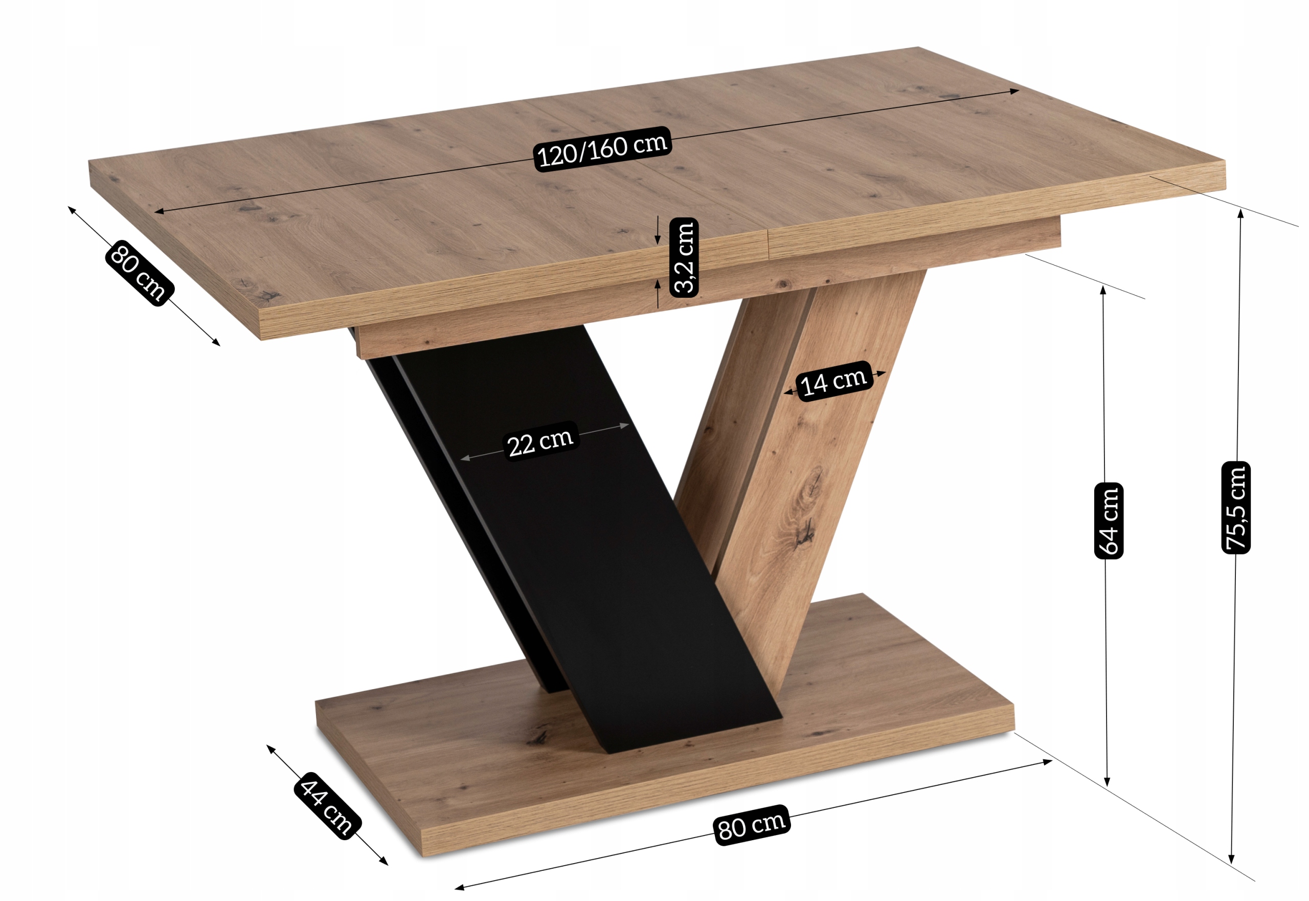 Wysokość stołu: 75,5 cm