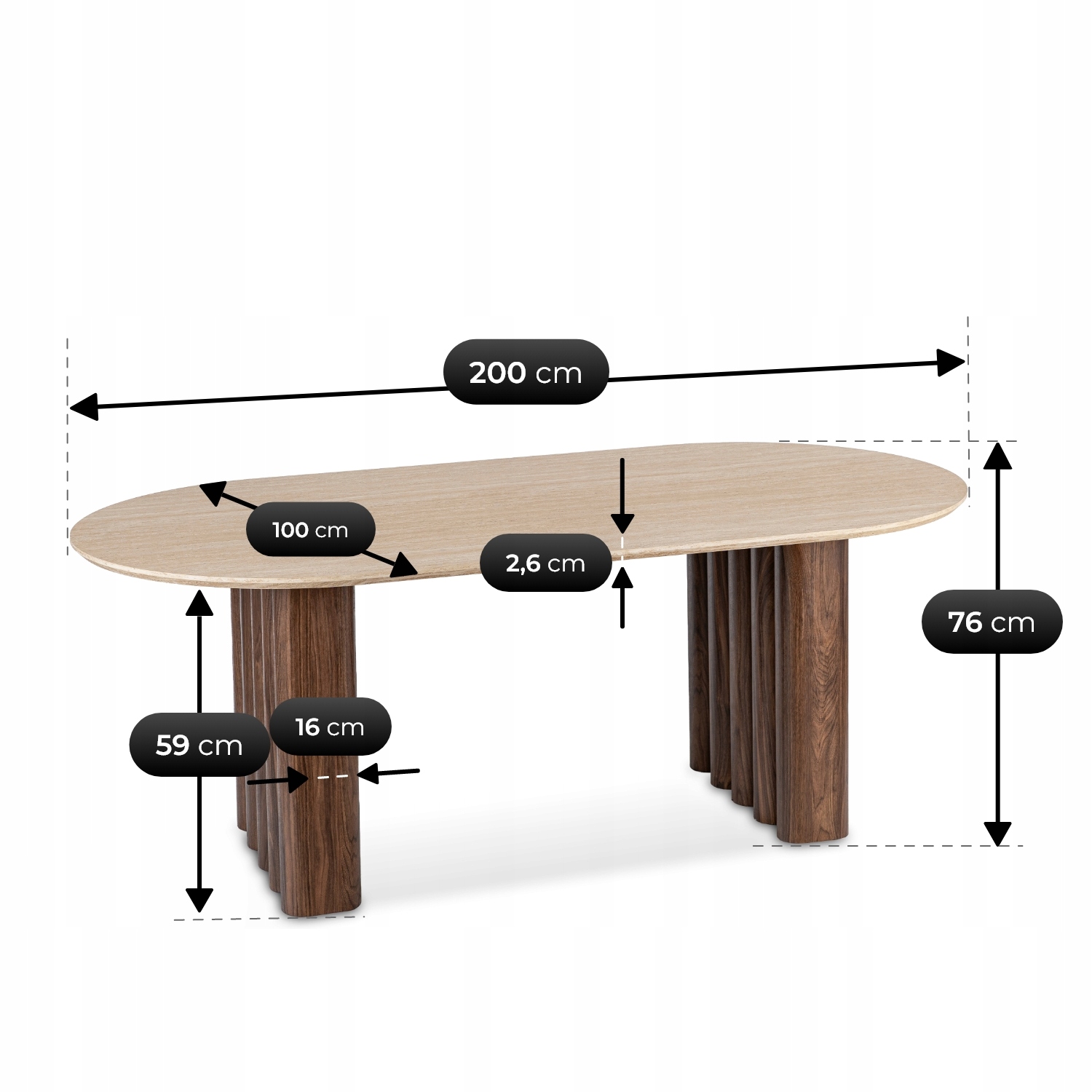 - Wysokość stołu: 76 cm