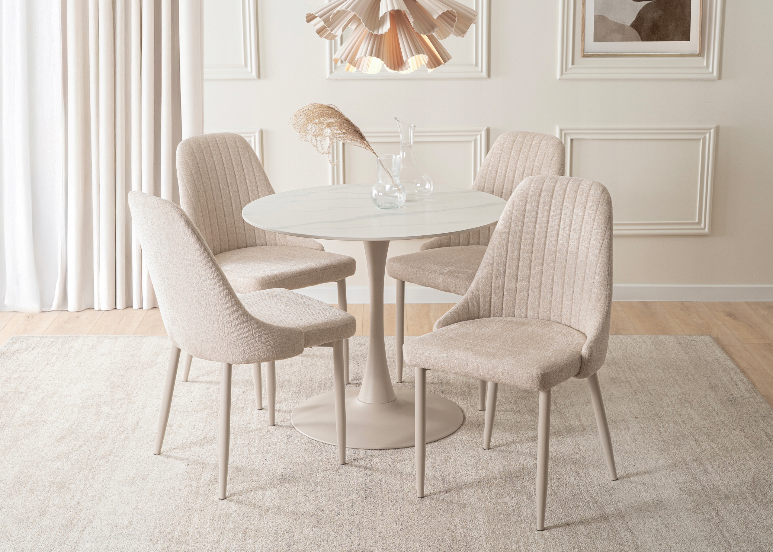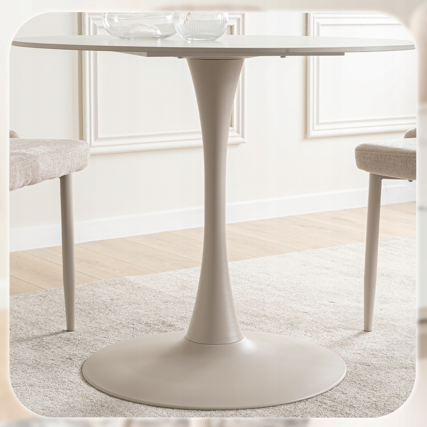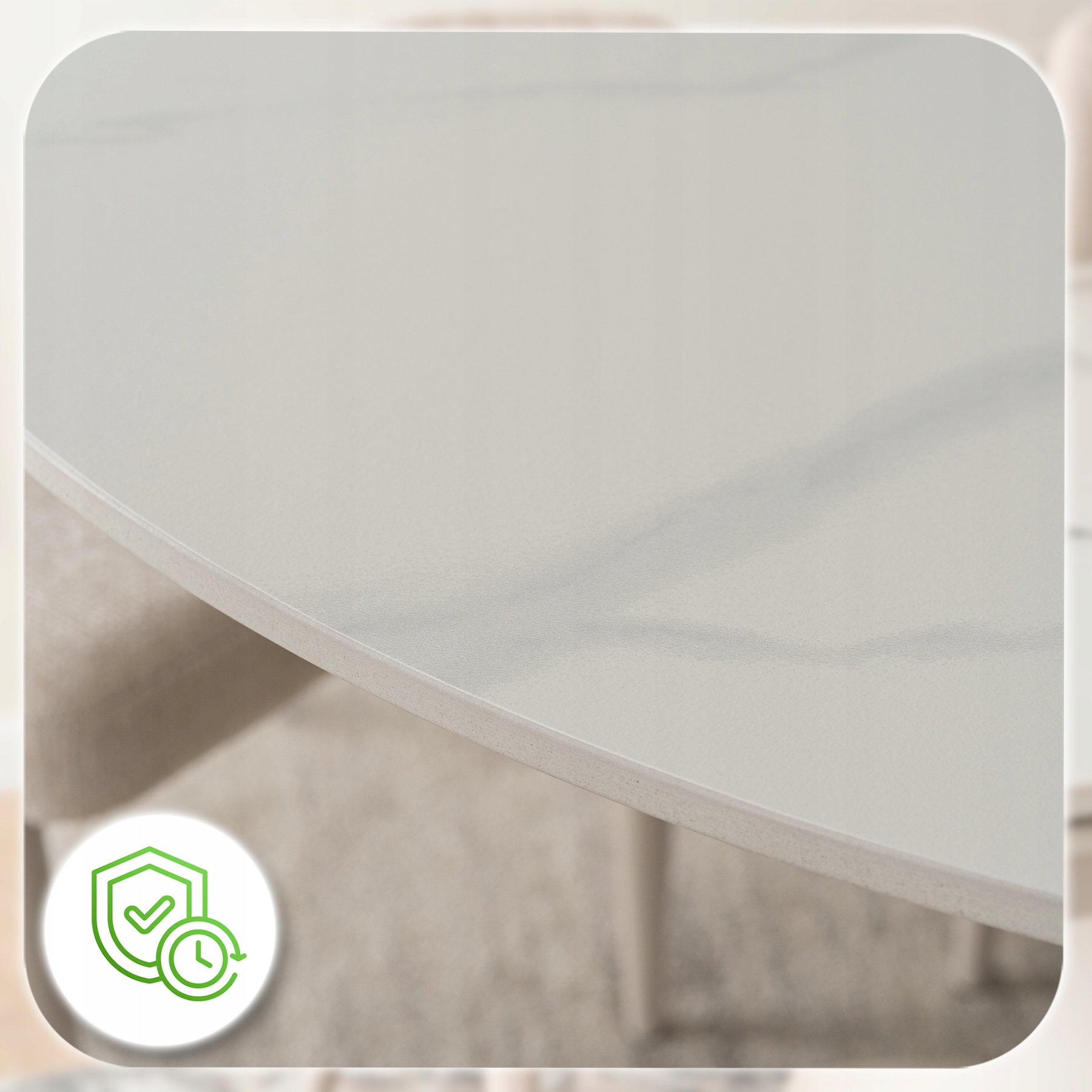 - Ponadczasowy design – połączenie bieli i kaszmiru sprawia, że stół doskonale komponuje się z aranżacjami w stylu modern, glamour i klasycznym.