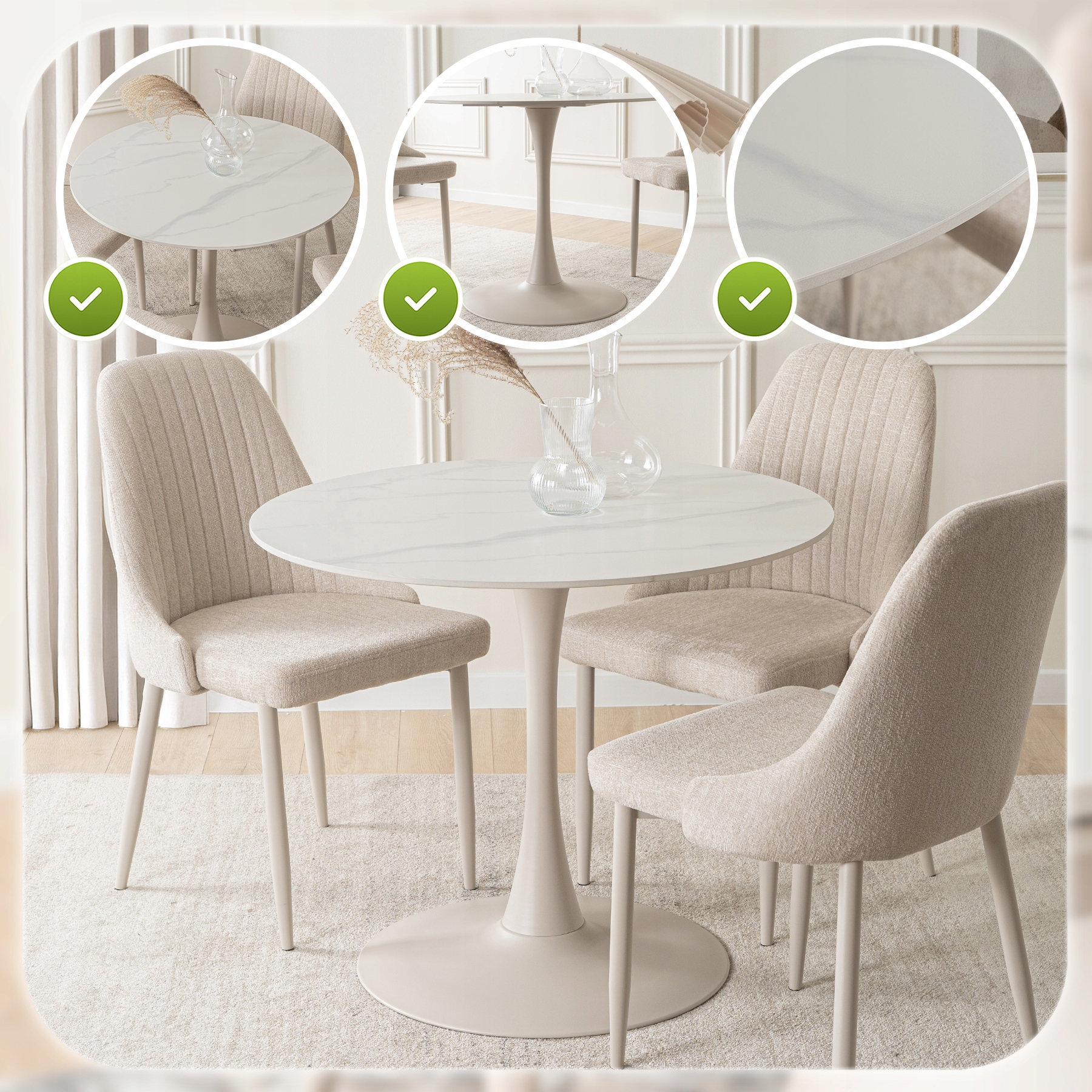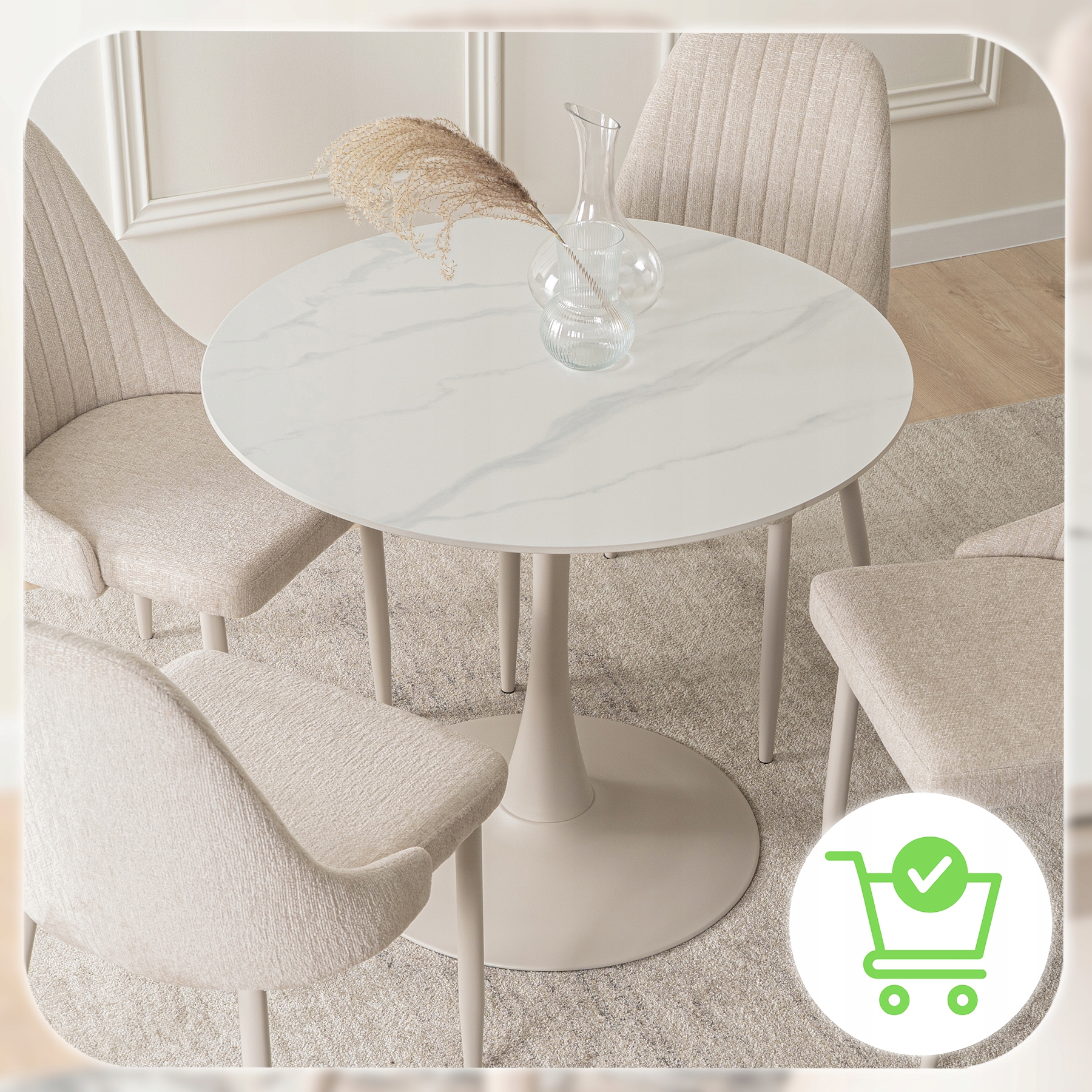 ✨ Stół Okrągły 90 Nowoczesny Glamour Ceramiczny Salon Jadalnia Biały SANDER