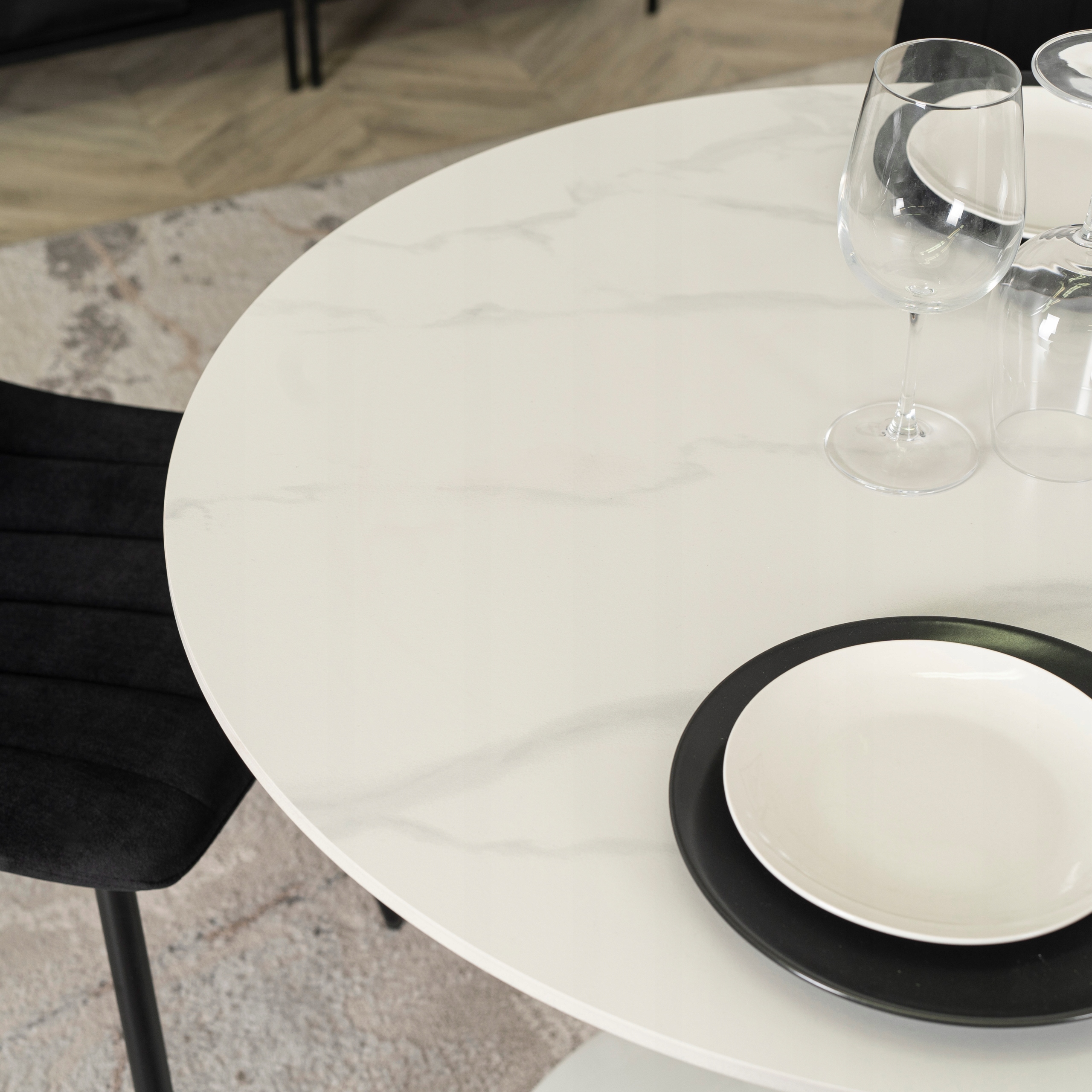 Stół Okrągły do Jadalni Salonu Stylowy Ceramiczny SANDER Biały Marmur ⭐⭐⭐⭐⭐