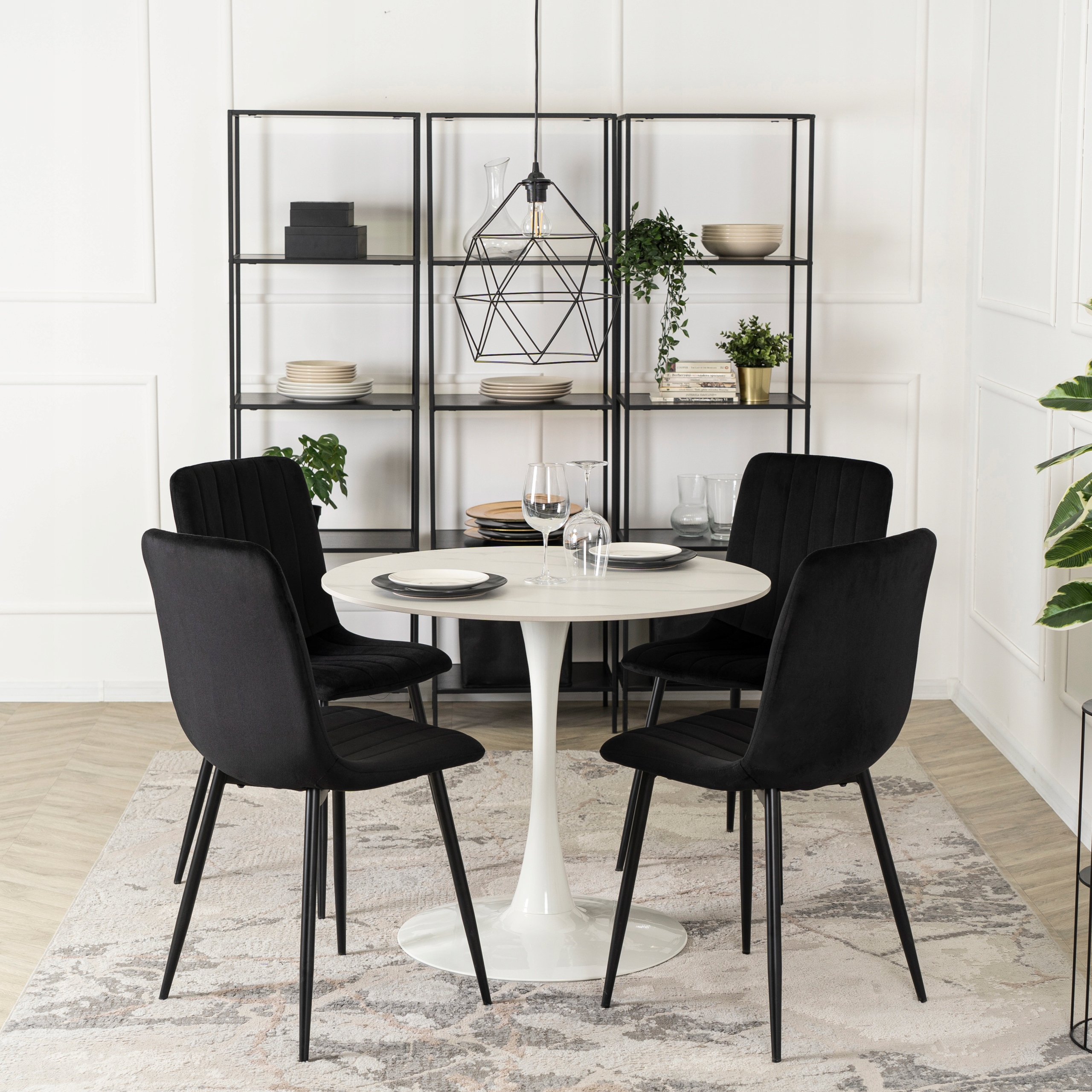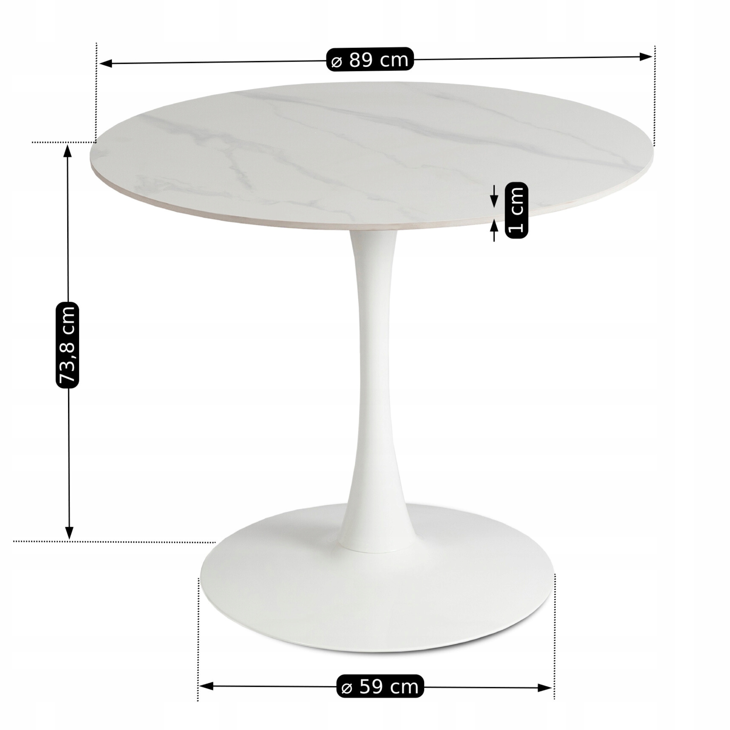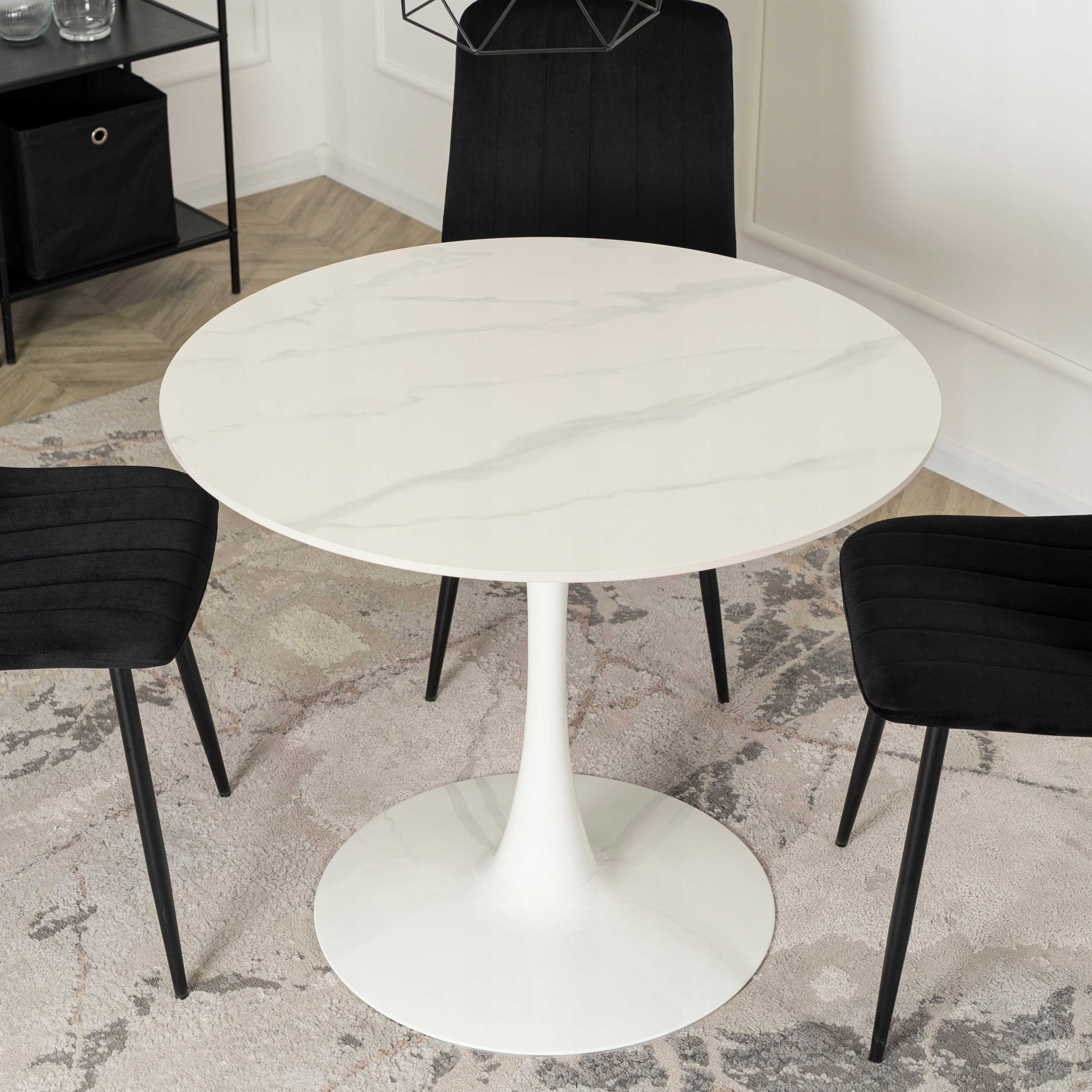 - Stół okrągły ceramiczny SANDER kolor biały marmur - biały