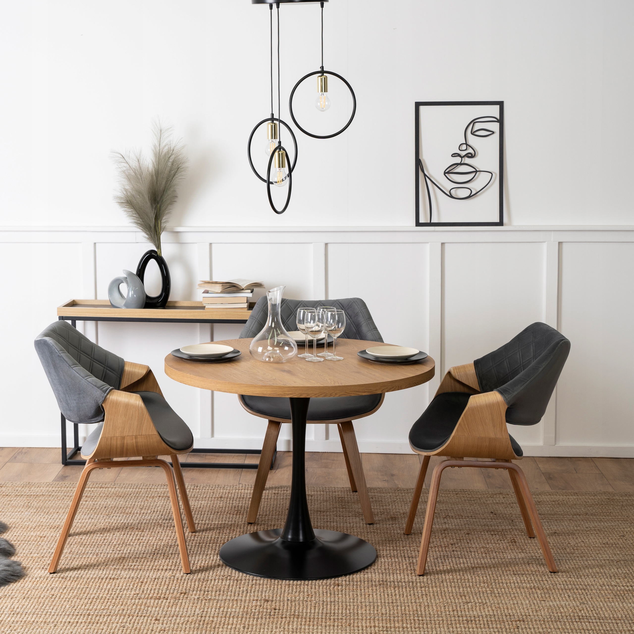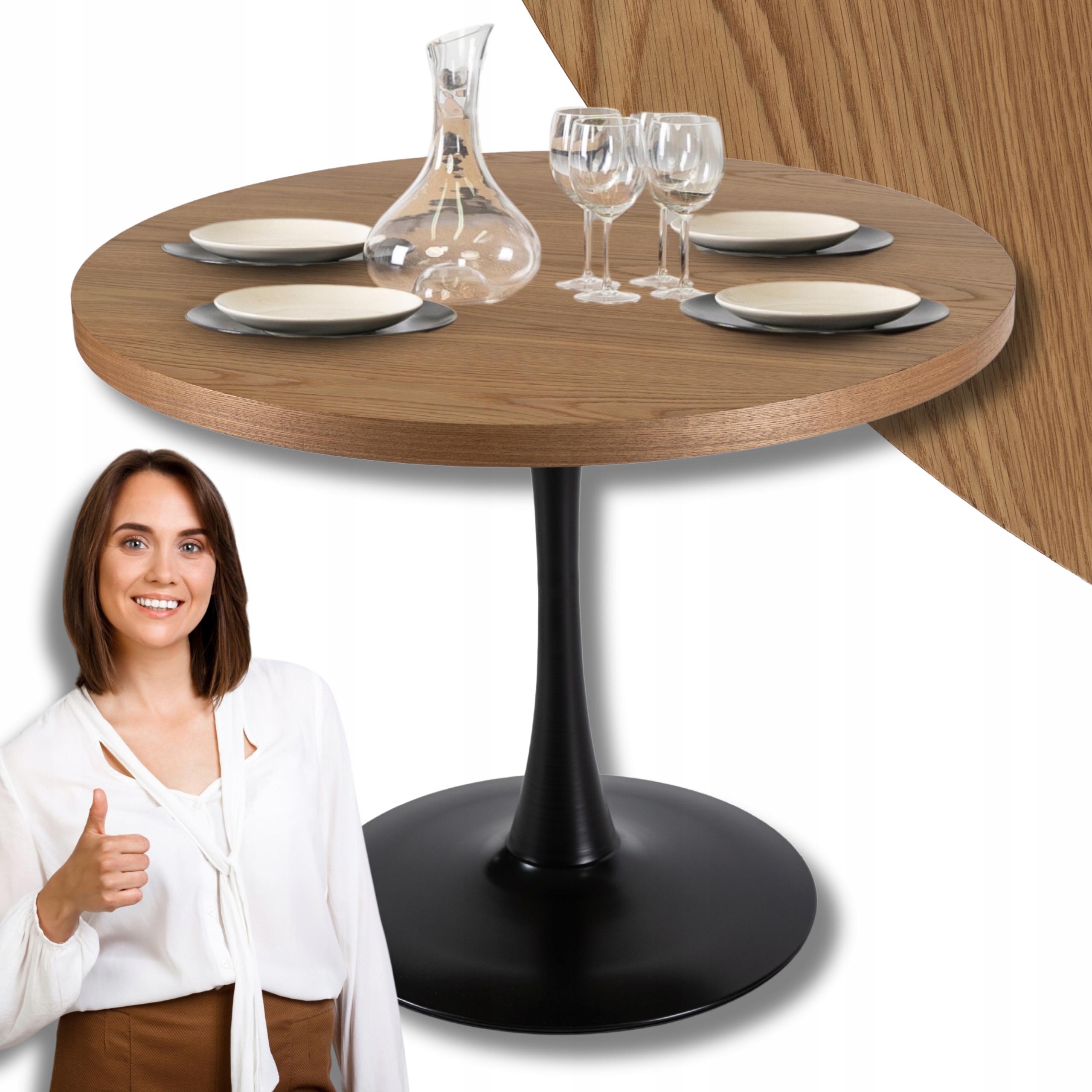 - Stół okrągły LINO w kolorze dąb złoty - czarny