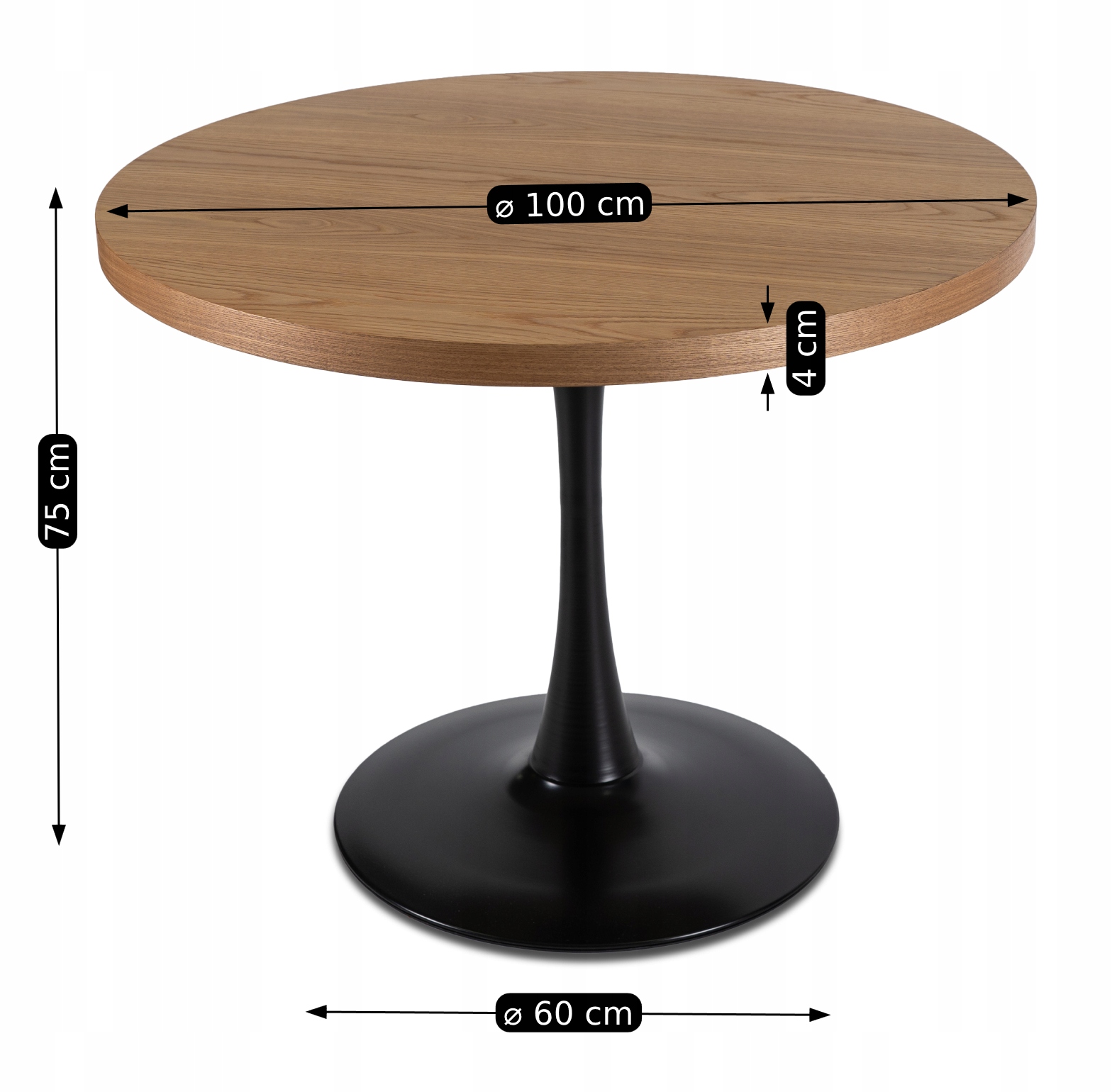 ⭐ Stylową nogę z okrągłą podstawą wykonano z metalu malowanego na czarno. Doskonale komponuje się z blatem.