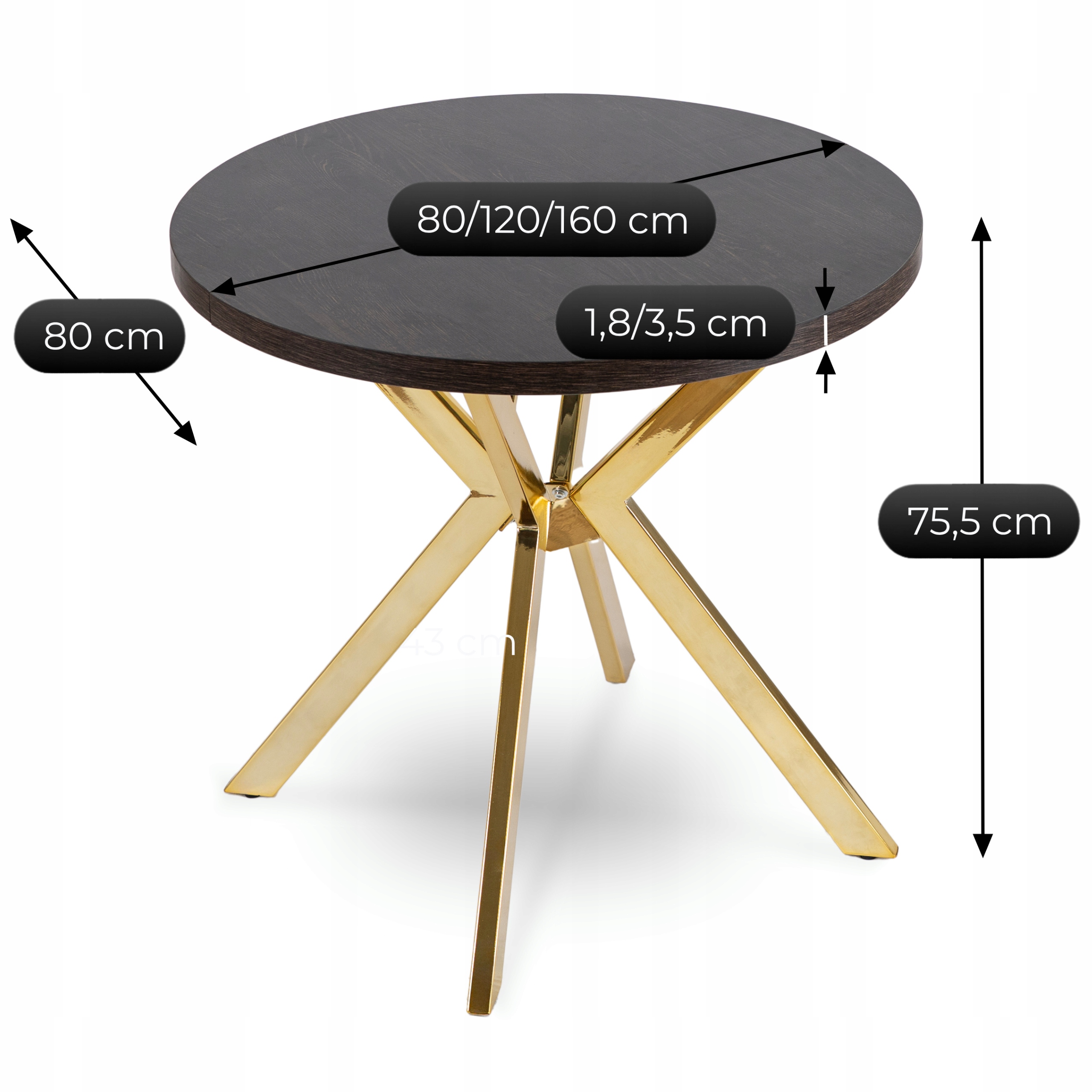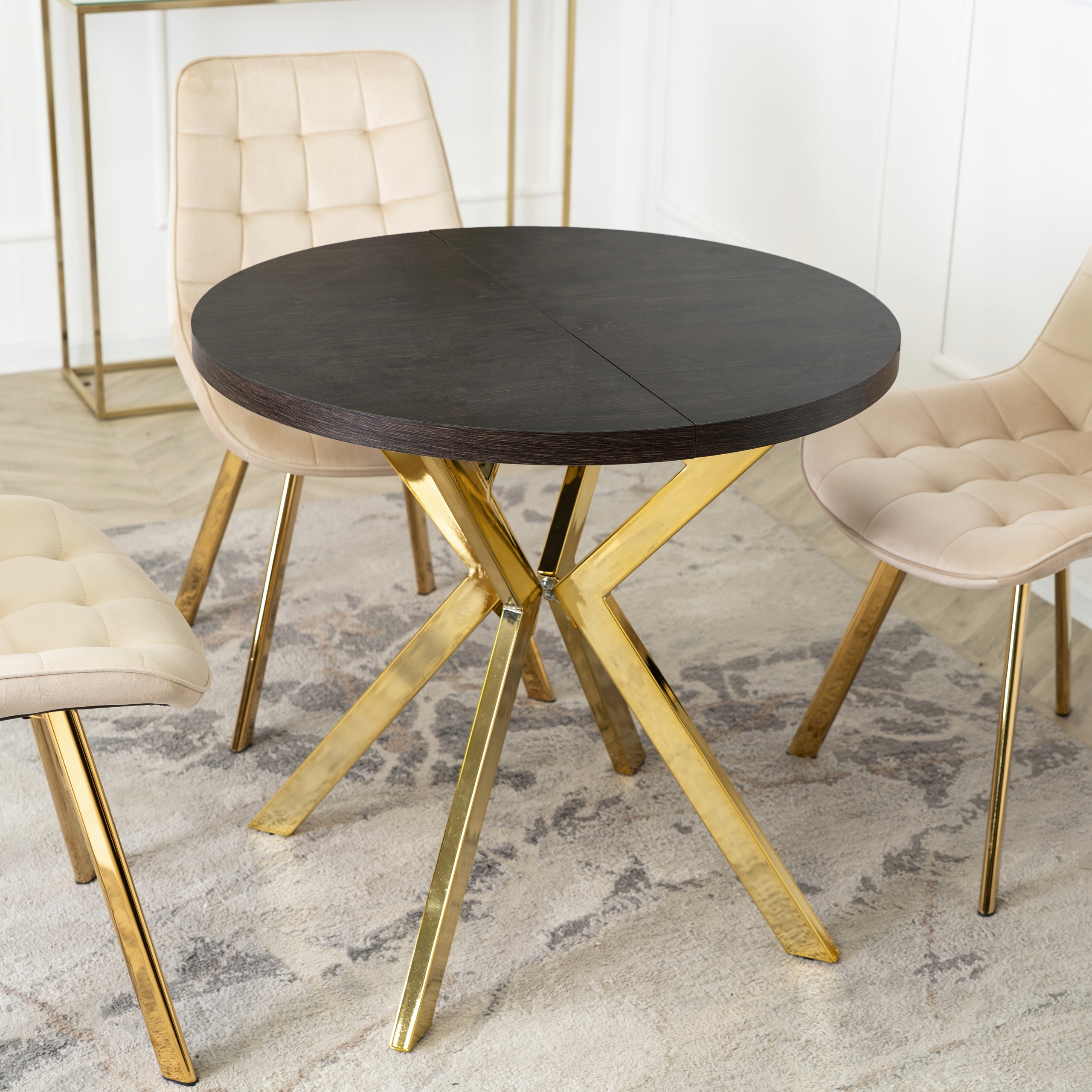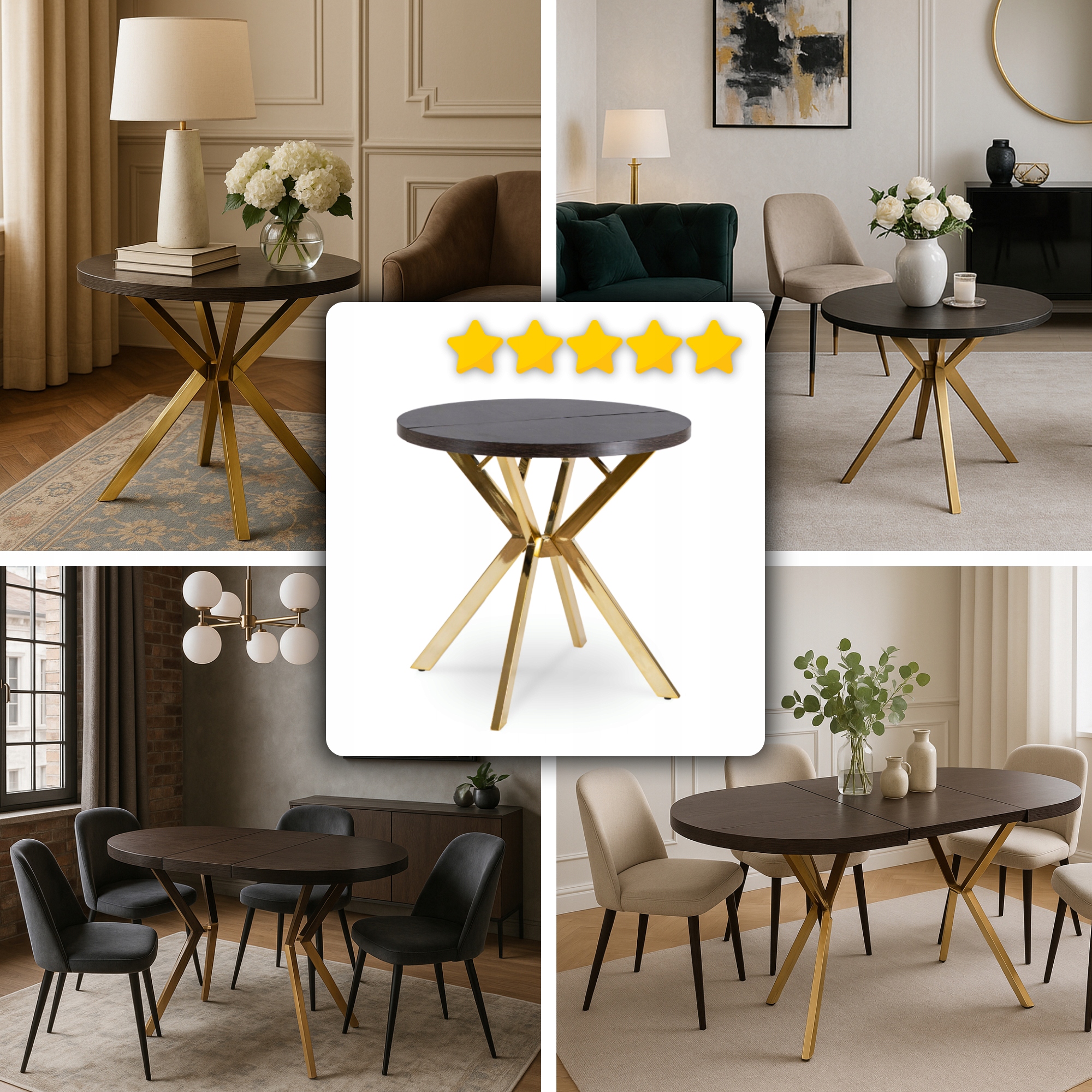 Stół Okrągły Rozkładany Nowoczesny Do Jadalni Salonu DORIAN Czarny Złoty ✨