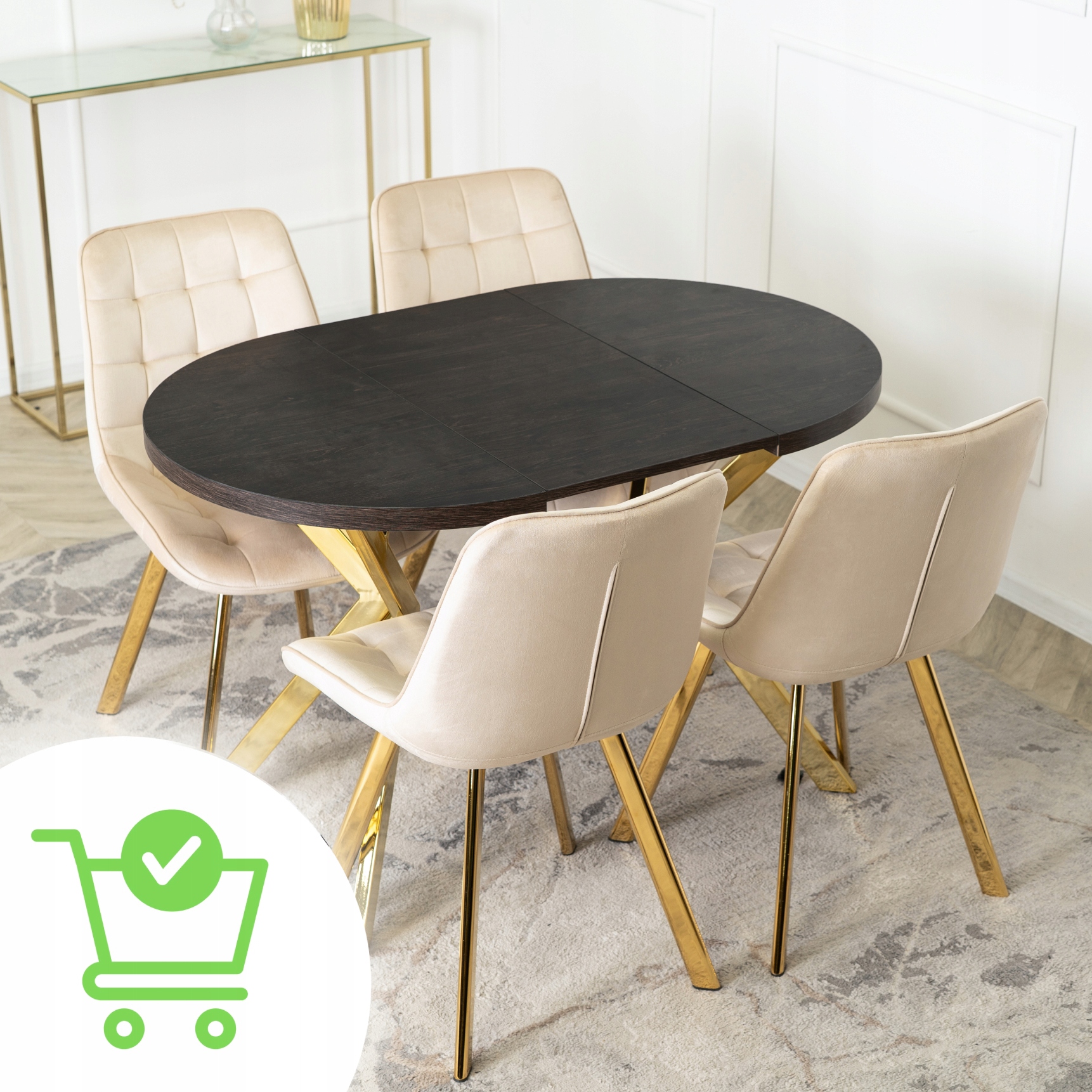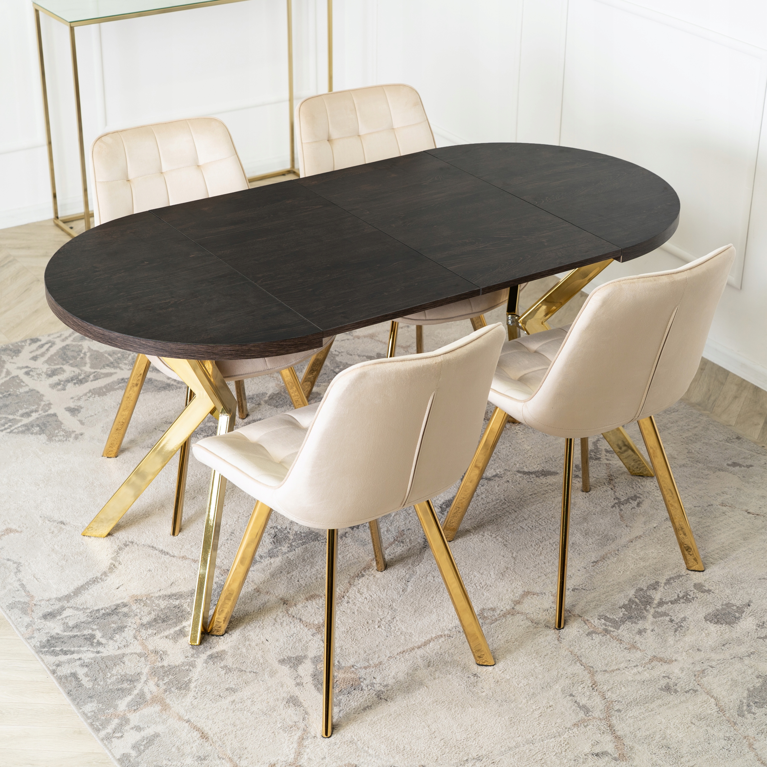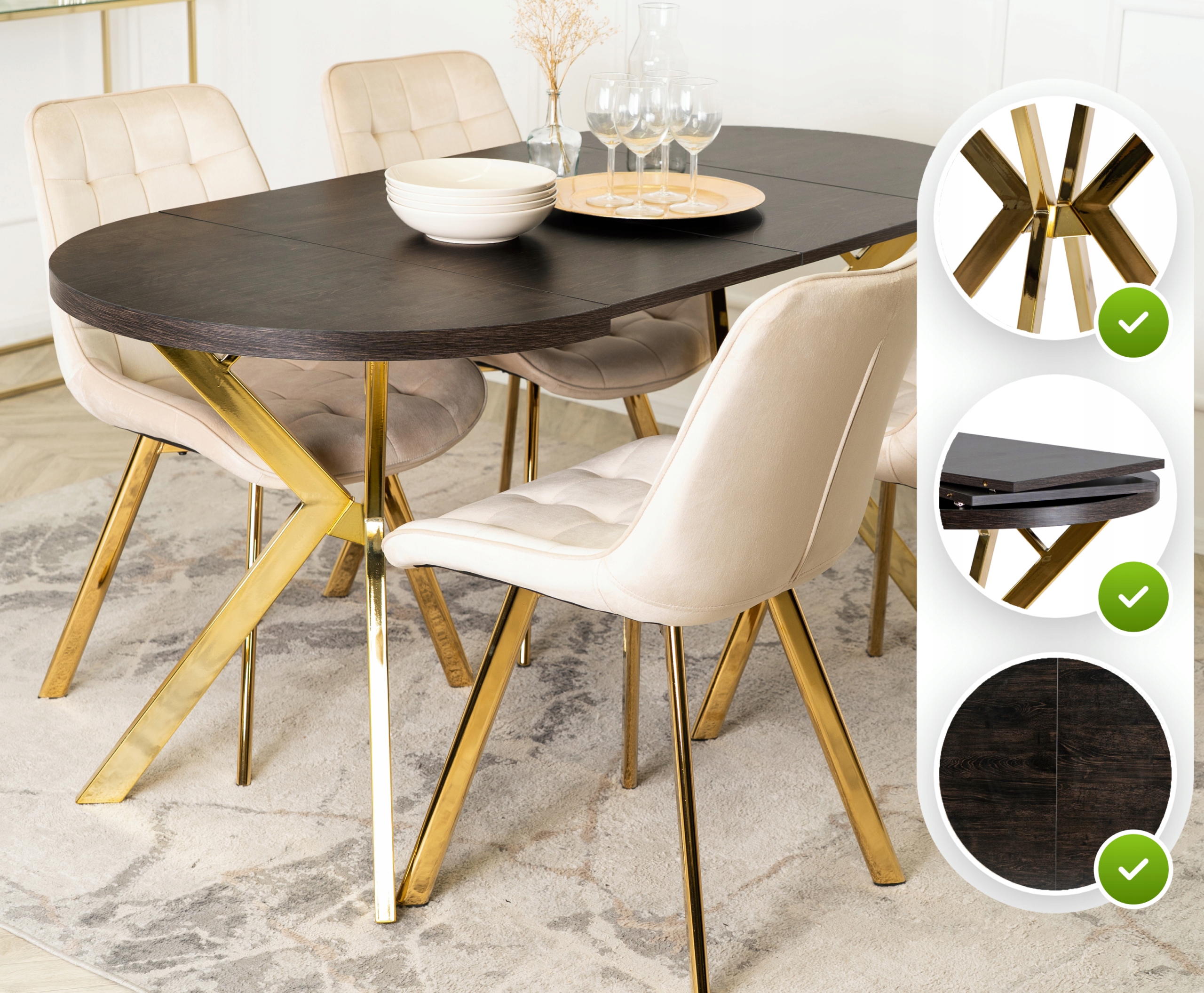 Stół Okrągły Rozkładany Nowoczesny Do Jadalni Salonu DORIAN Czarny Złoty ✨