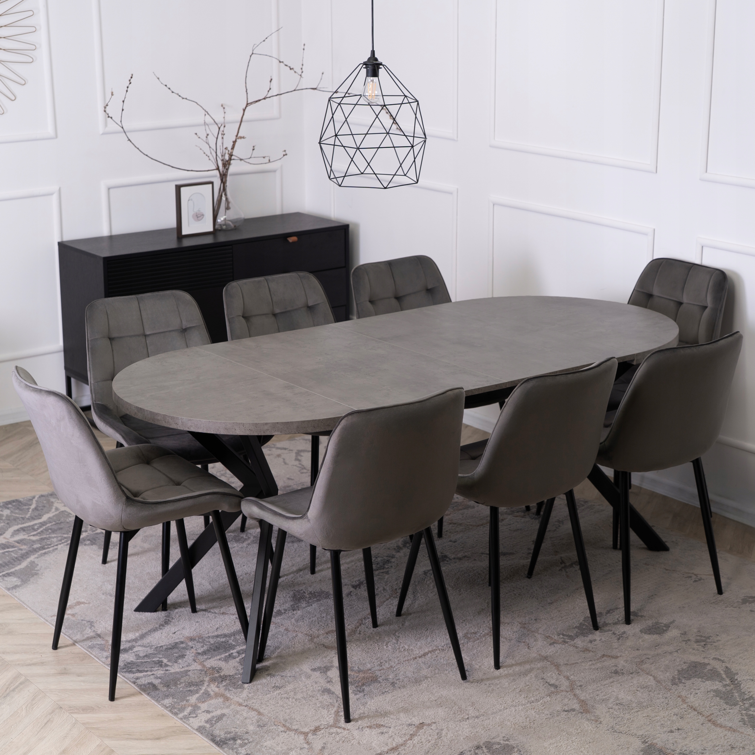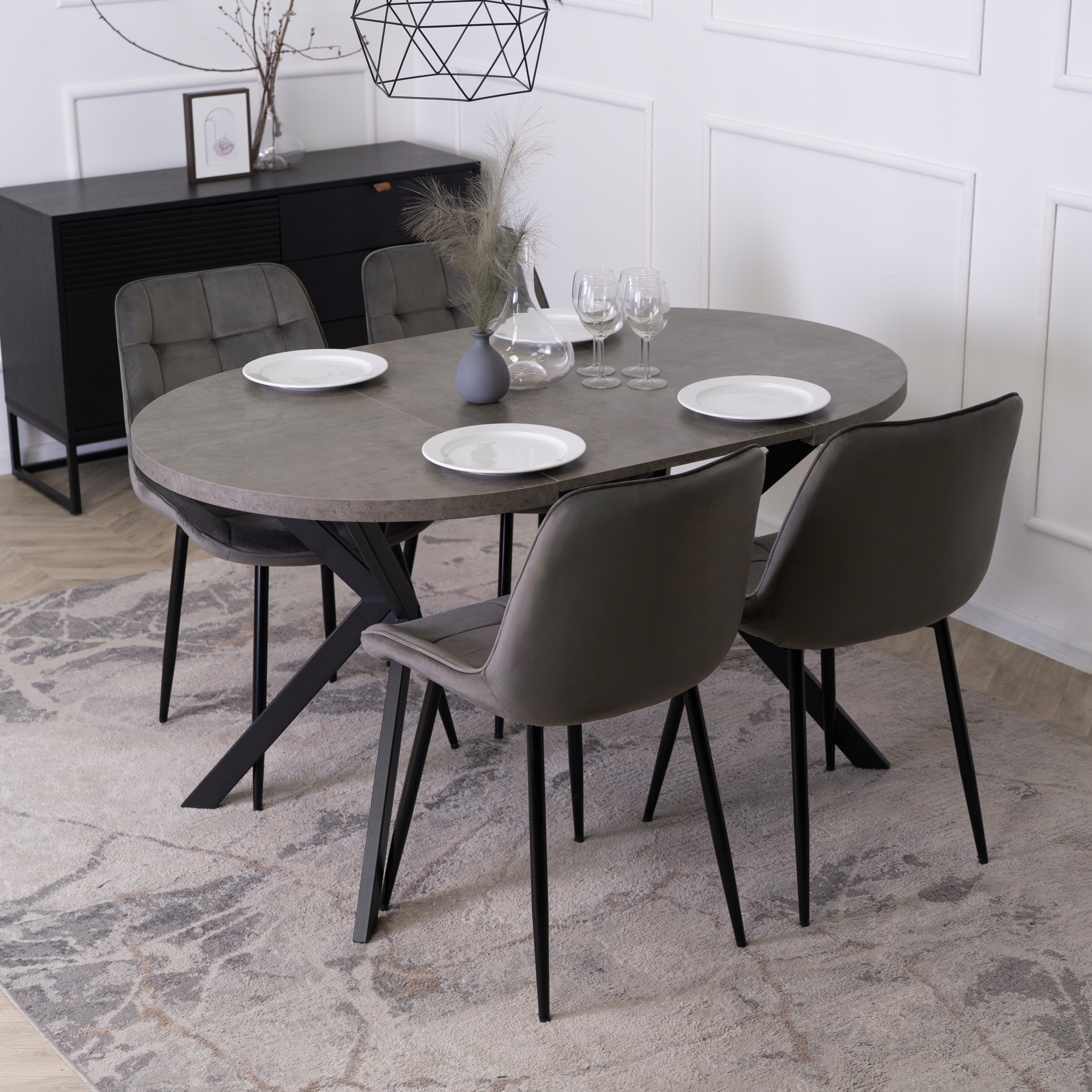 - Dla miłośników nowoczesnego designu – stół LUGO łączy betonowy dekor z czarną stalą, tworząc modny akcent do wnętrz w stylu loft, industrial, boho lub skandynawskim.