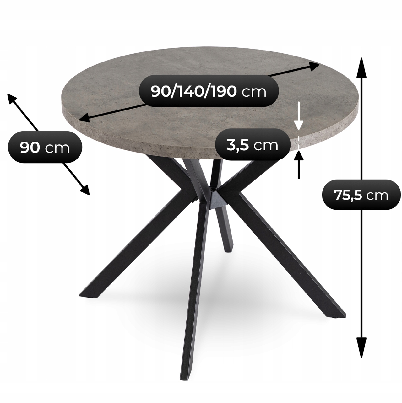- Średnica blatu: 90 cm