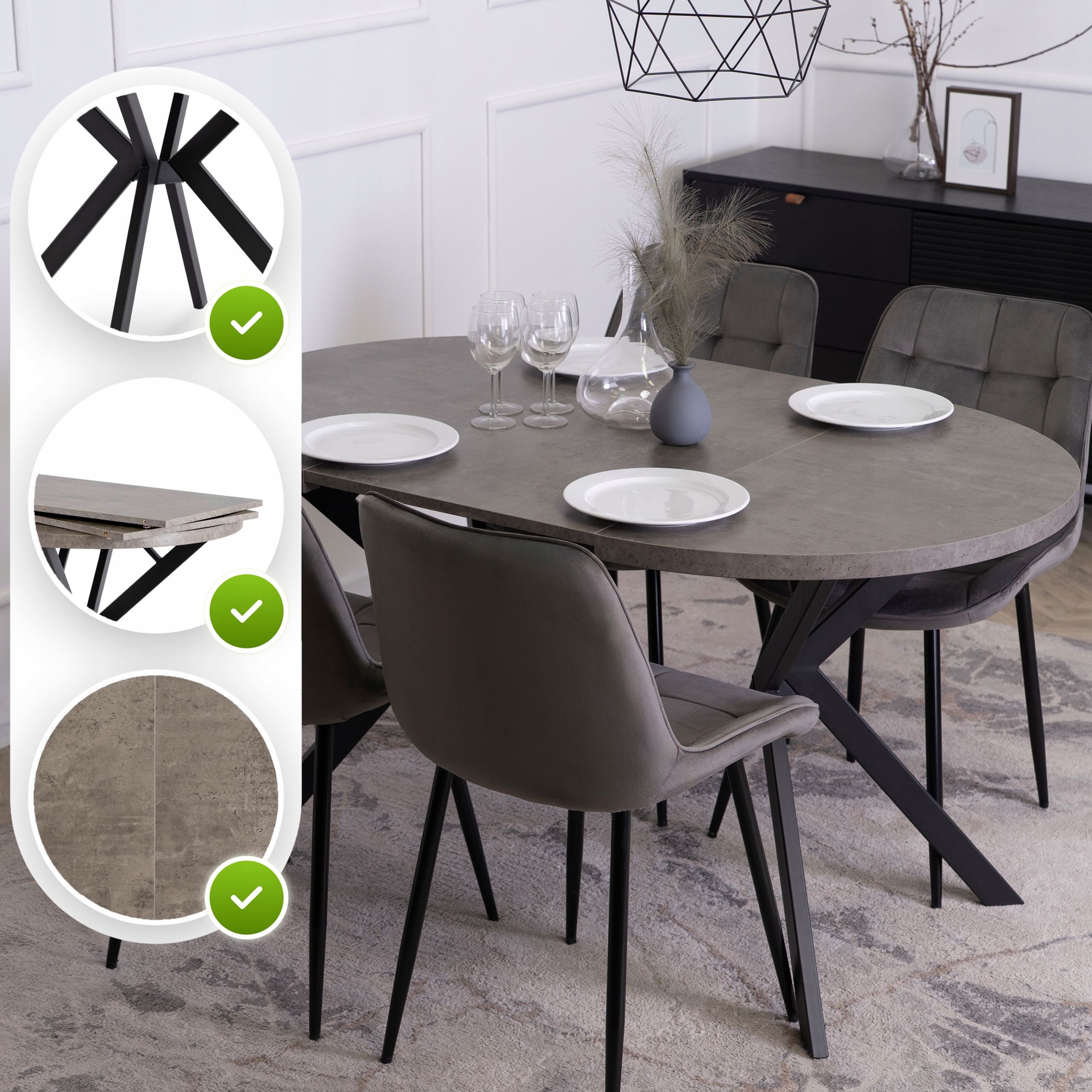 Stół Okrągły Rozkładany Nowoczesny Duży Do Jadalni Salonu LUGO Beton ✨
