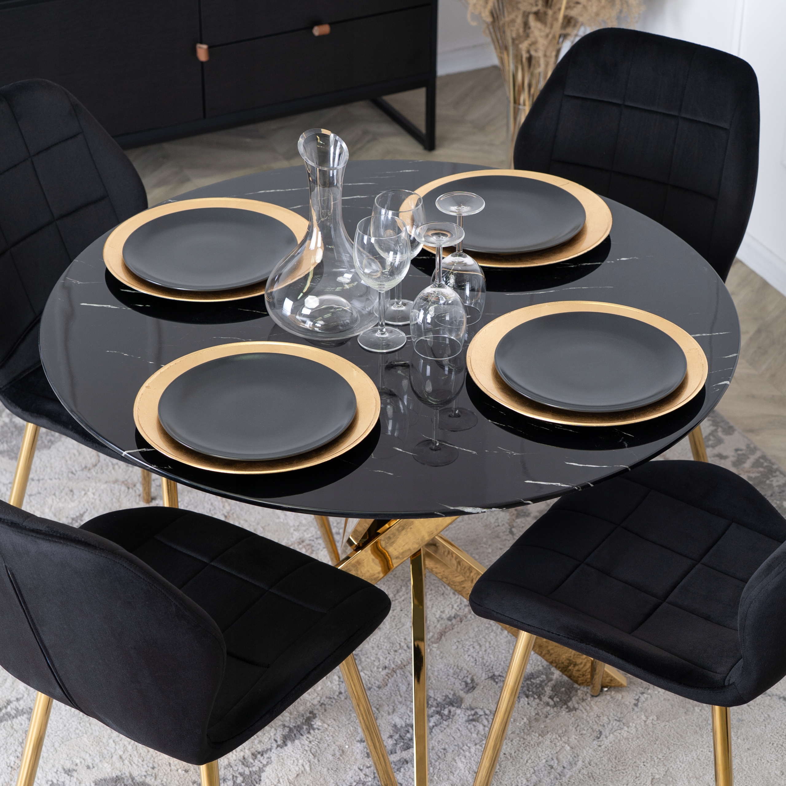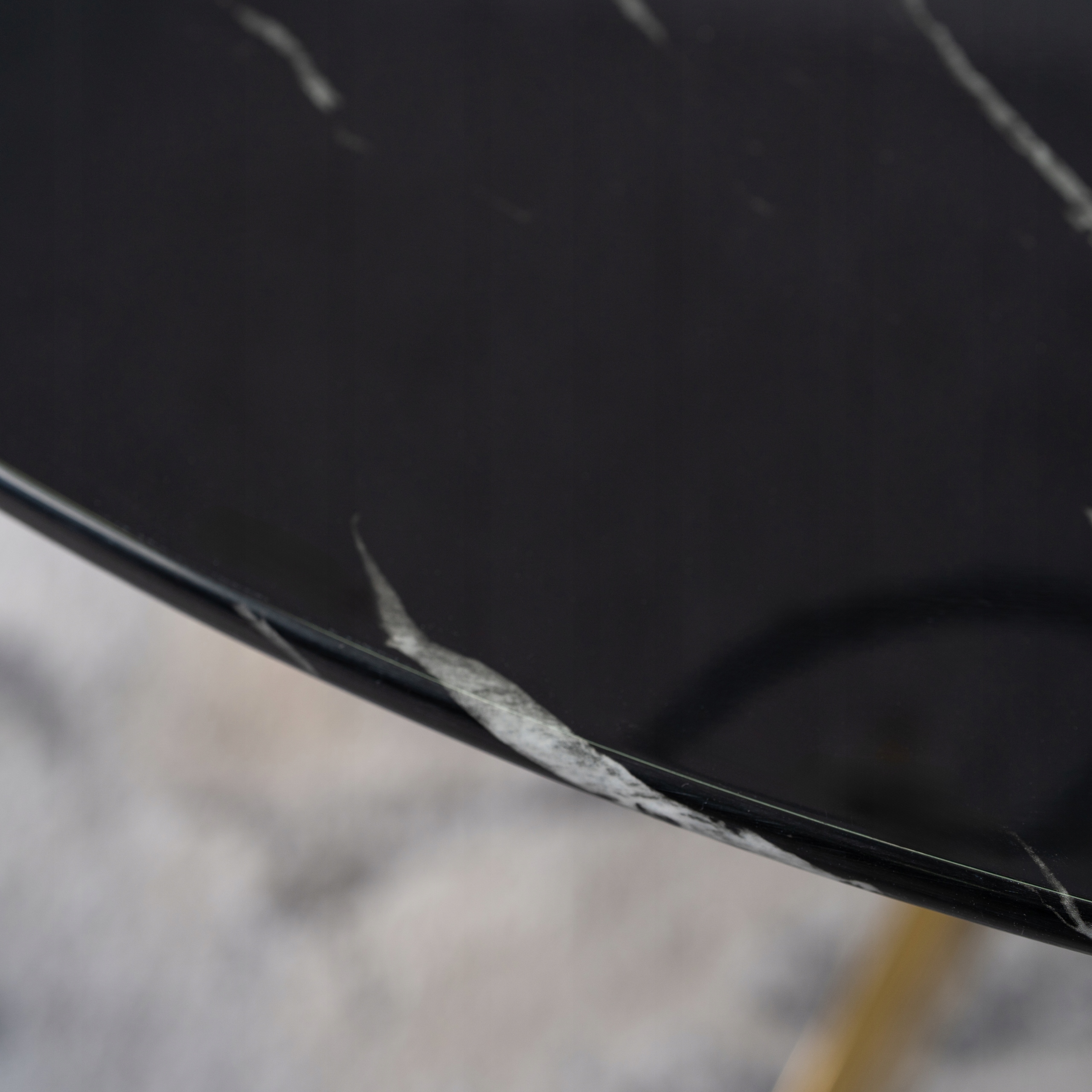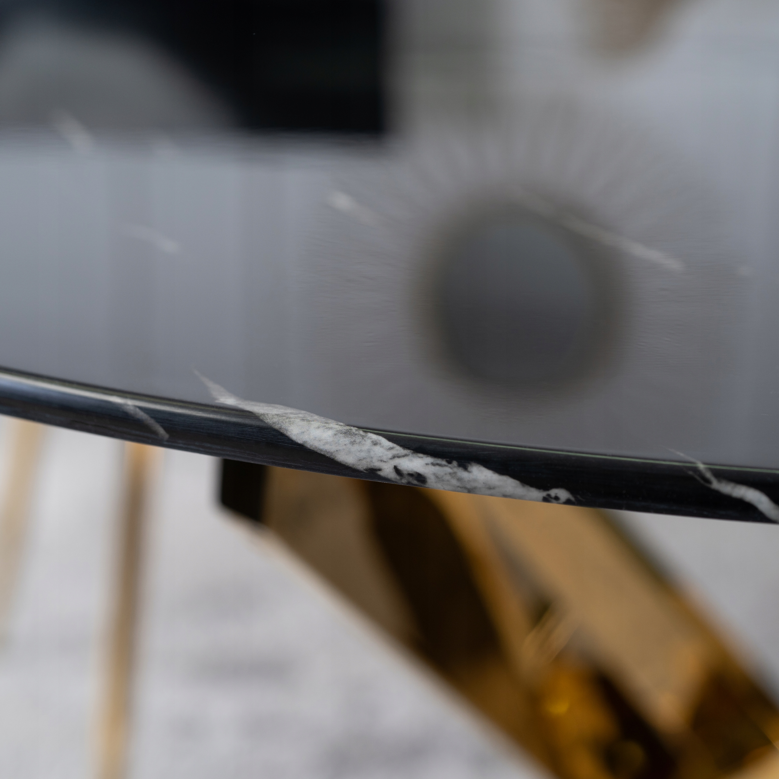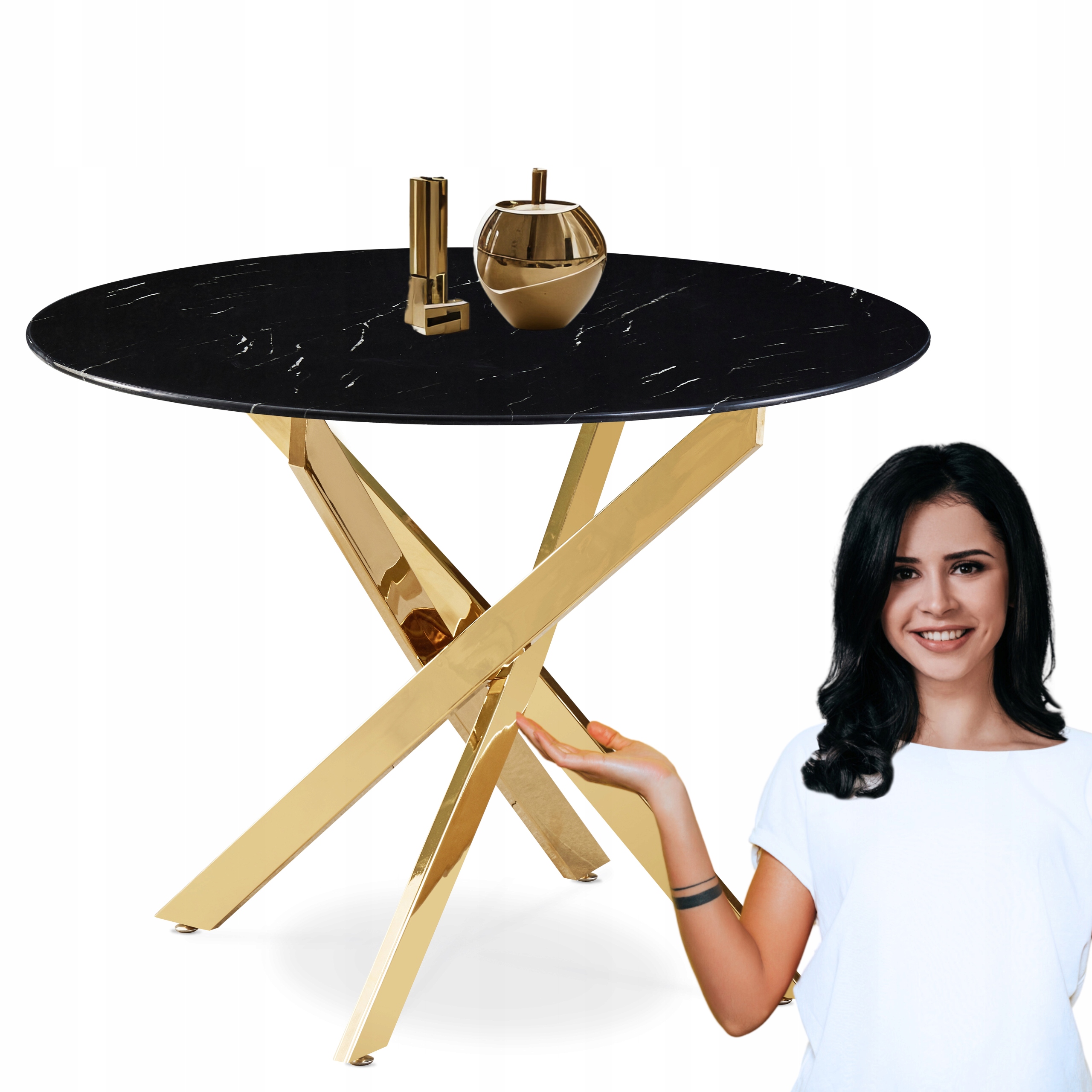 Stół Okrągły Szklany Czarny Marmur Glamour Złoty Do Salonu Jadalni BALI ⭐⭐⭐⭐⭐