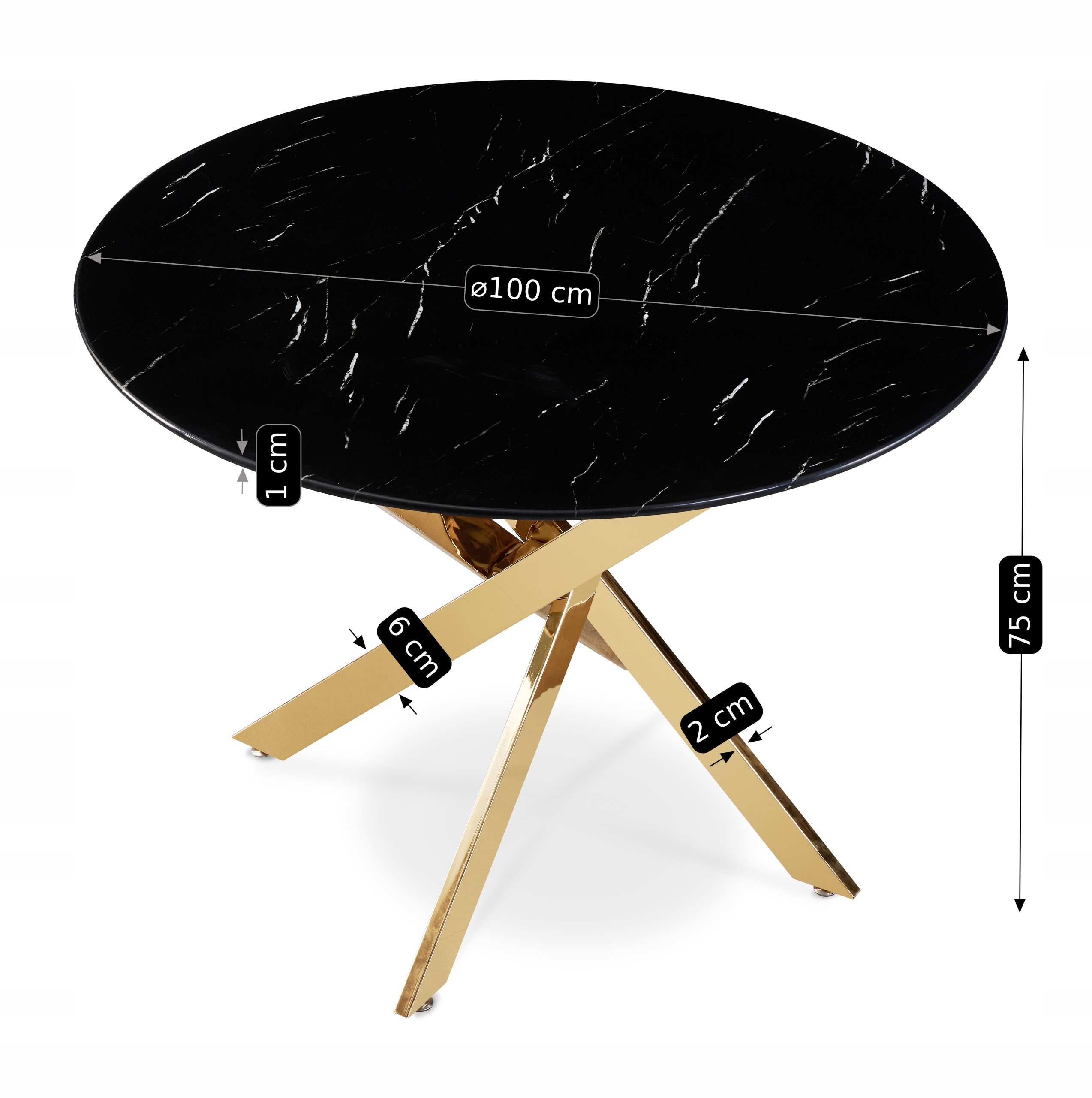 - Stół okrągły szklany BALI kolor czarny - złoty