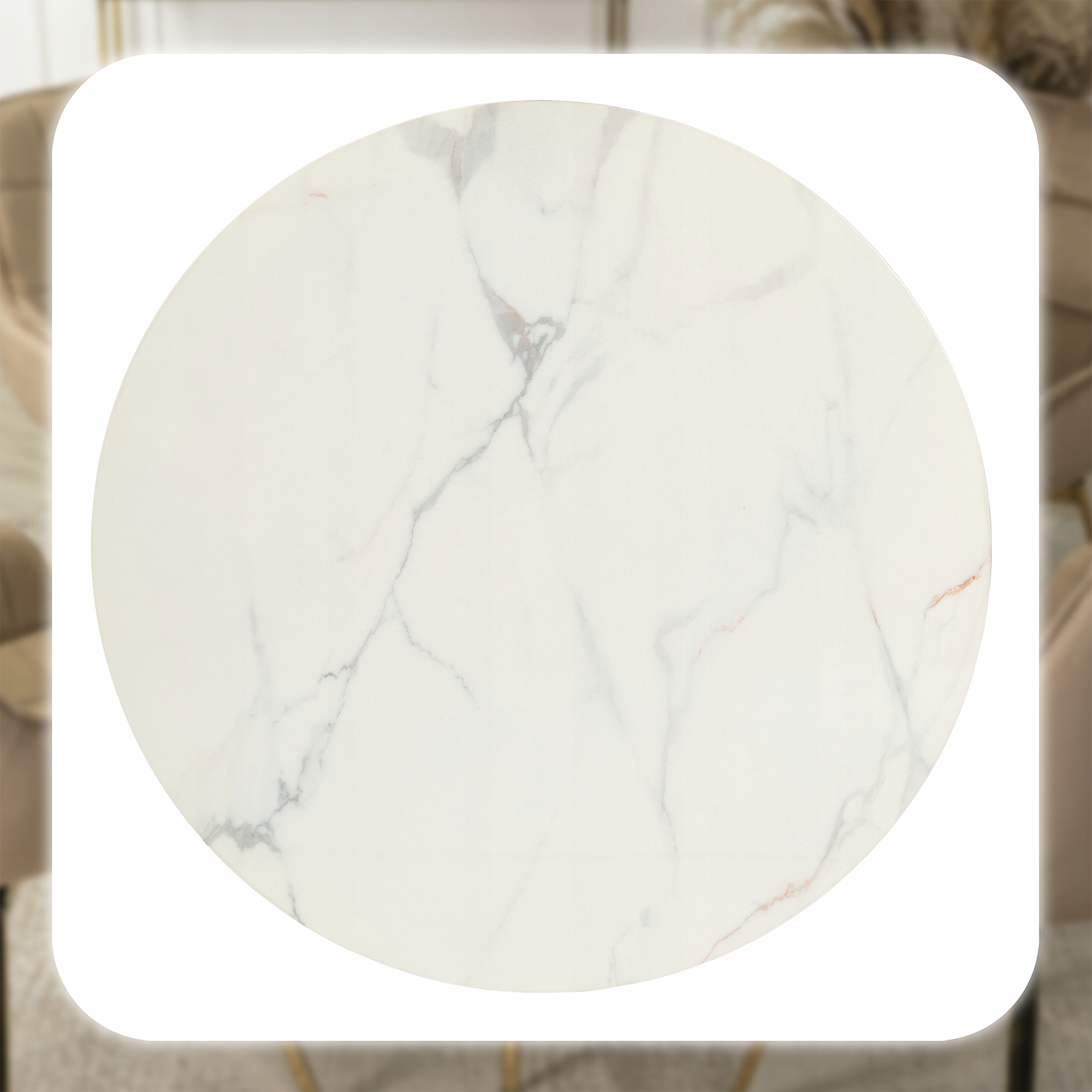 ✨ Stół Okrągły Szklany Glamour Do Kuchni Jadalni Salonu Biały Marmur TINGA