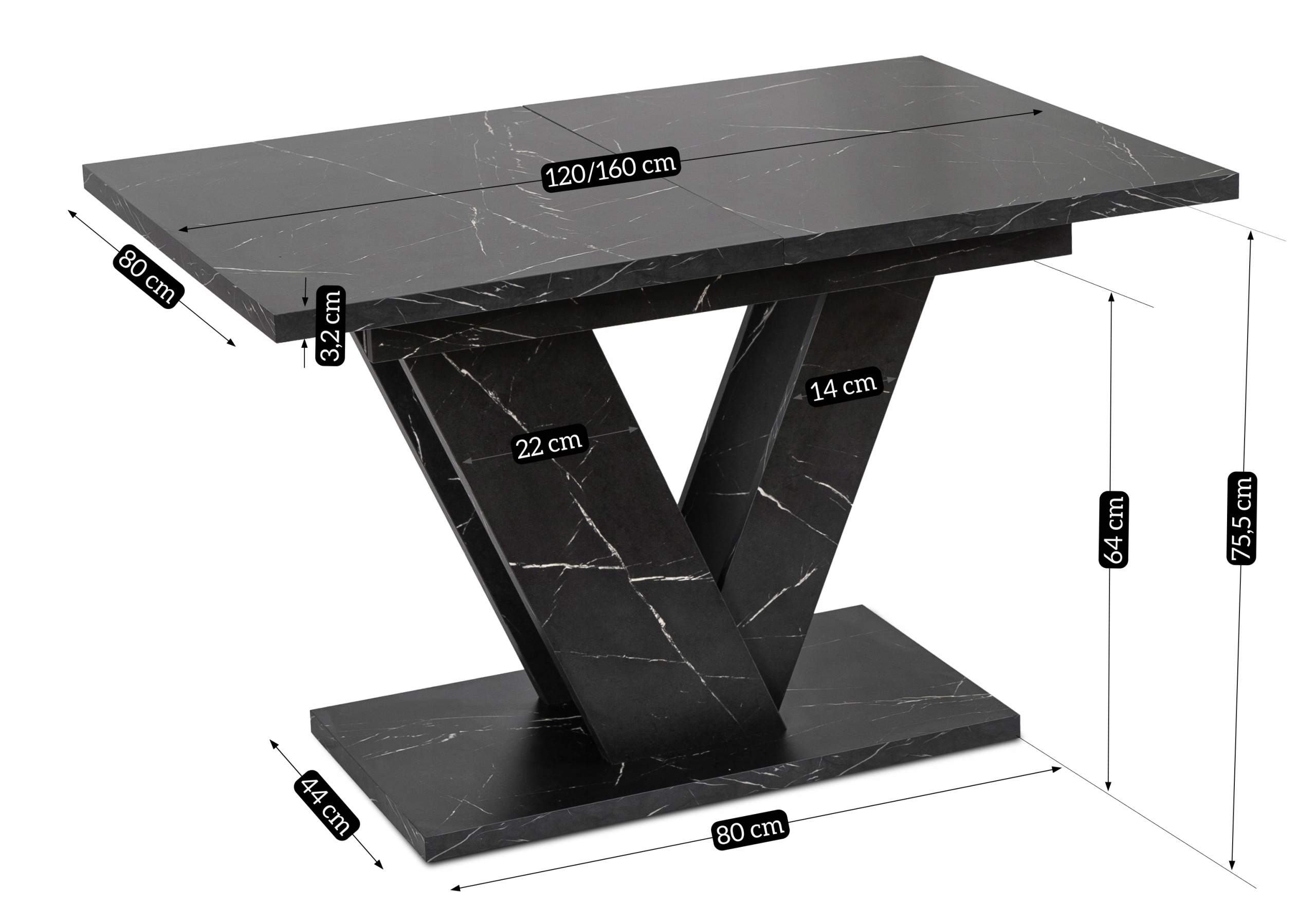 Stół Rozkładany 120/160 Nowoczesny Do Salonu Jadalni Marmur Czarny CLARK ⭐⭐⭐⭐⭐