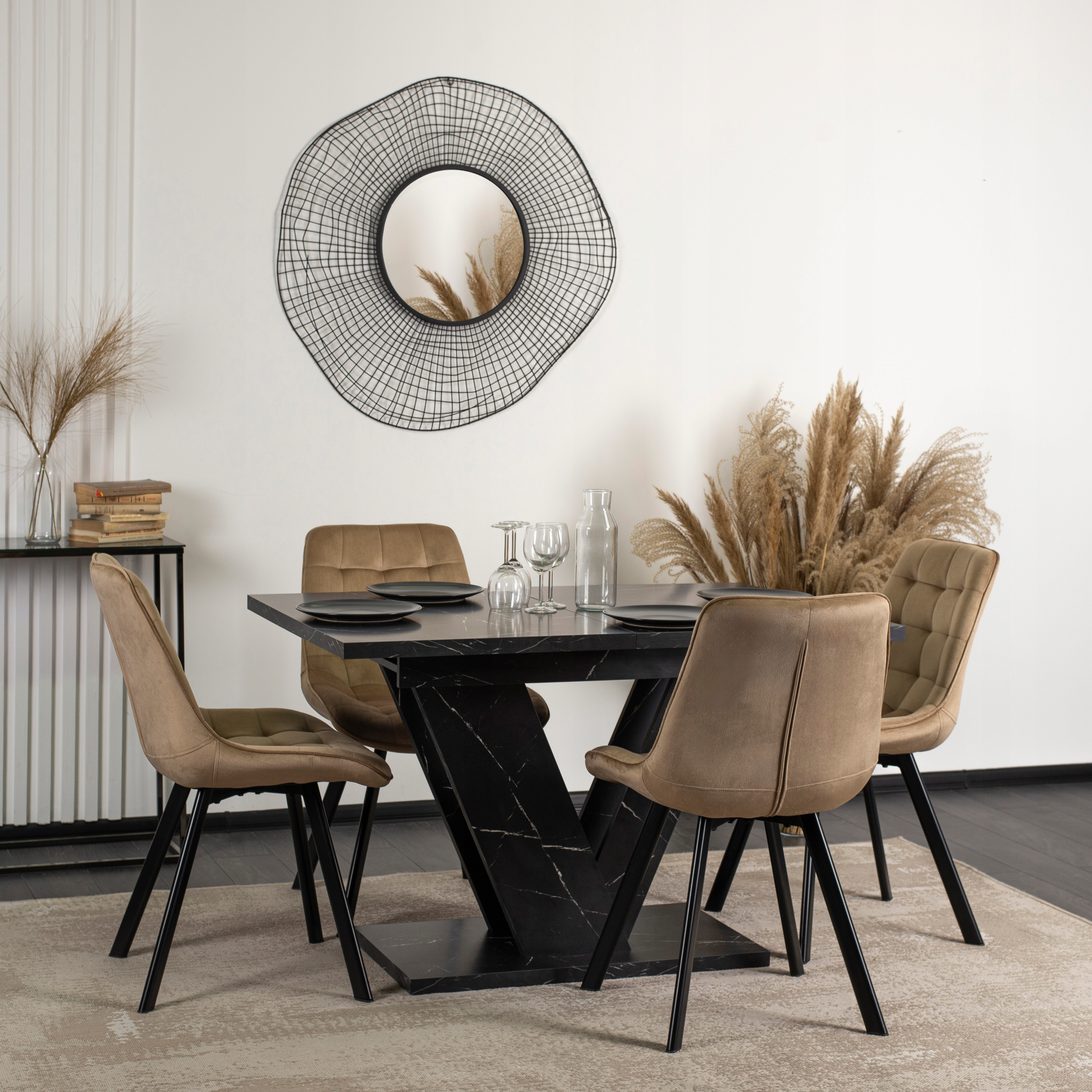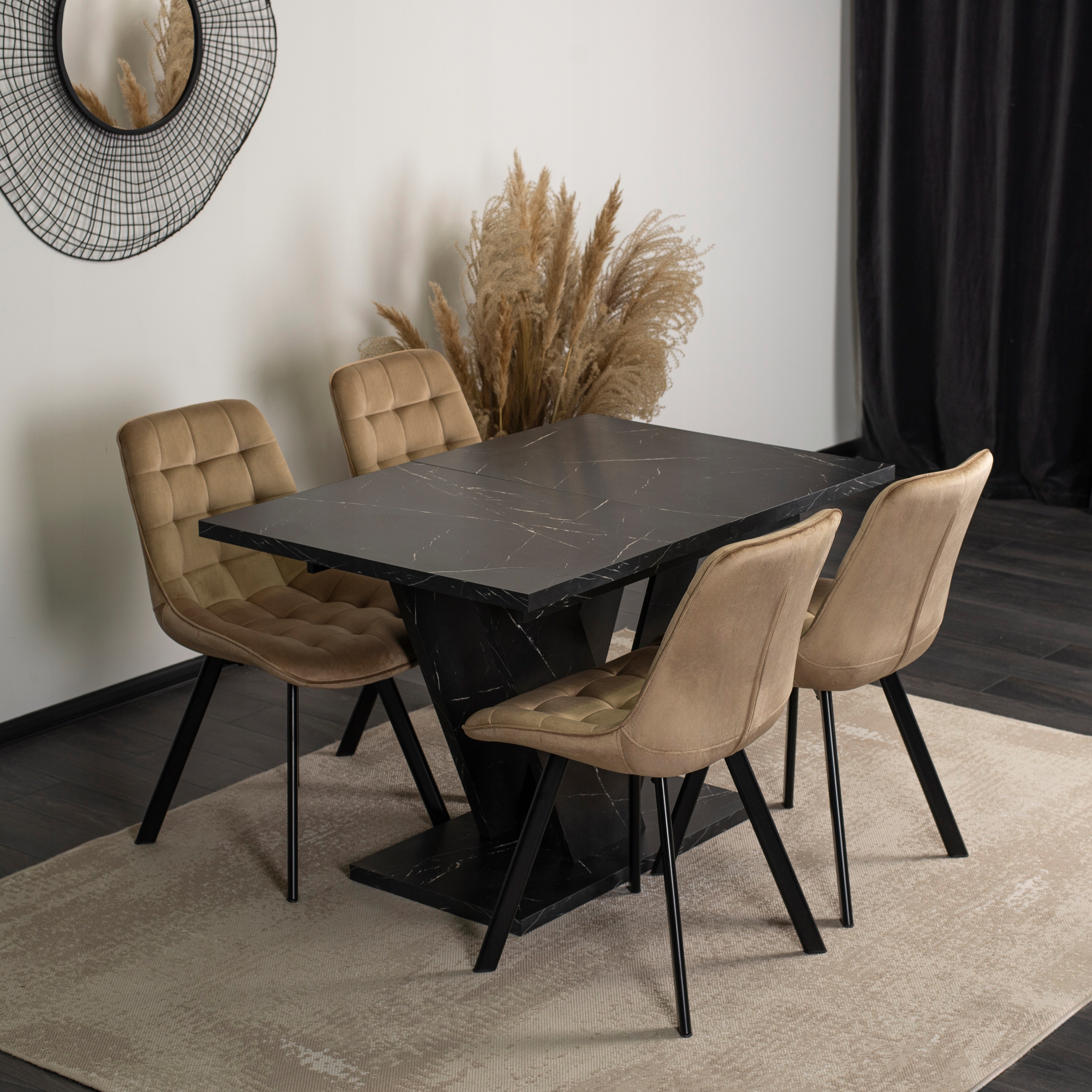 - Stół rozkładany prostokątny CLARK w kolorze czarnego marmuru